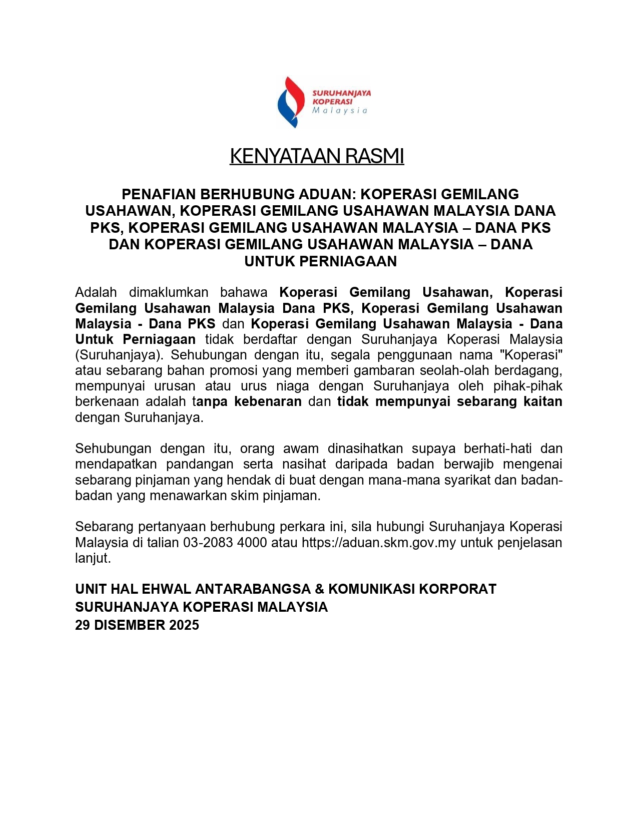 | IKLAN TERKINI KEKOSONGAN JAWATAN DI SURUHANJAYA KOPERASI MALAYSIA | |