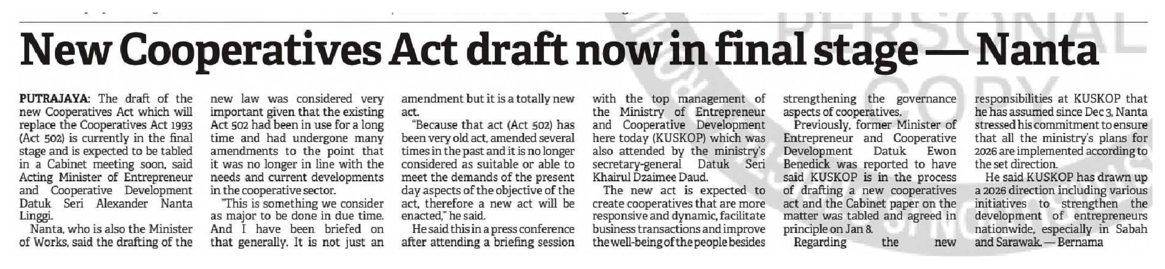 Akta Koperasi: Draf Baharu Kini Di Peringkat Akhir |