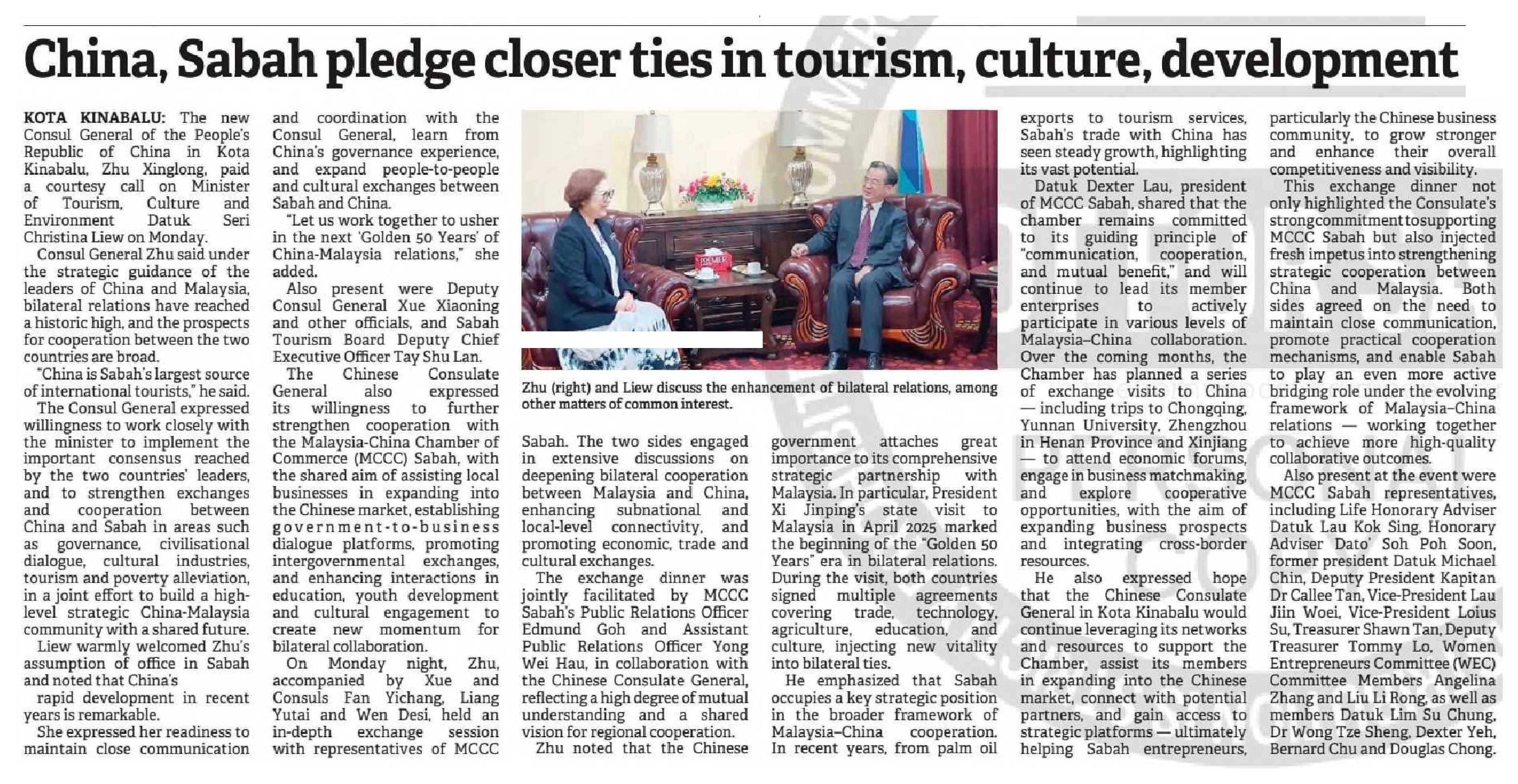 China, Sabah pledge closer ties in tourism, culture, development |