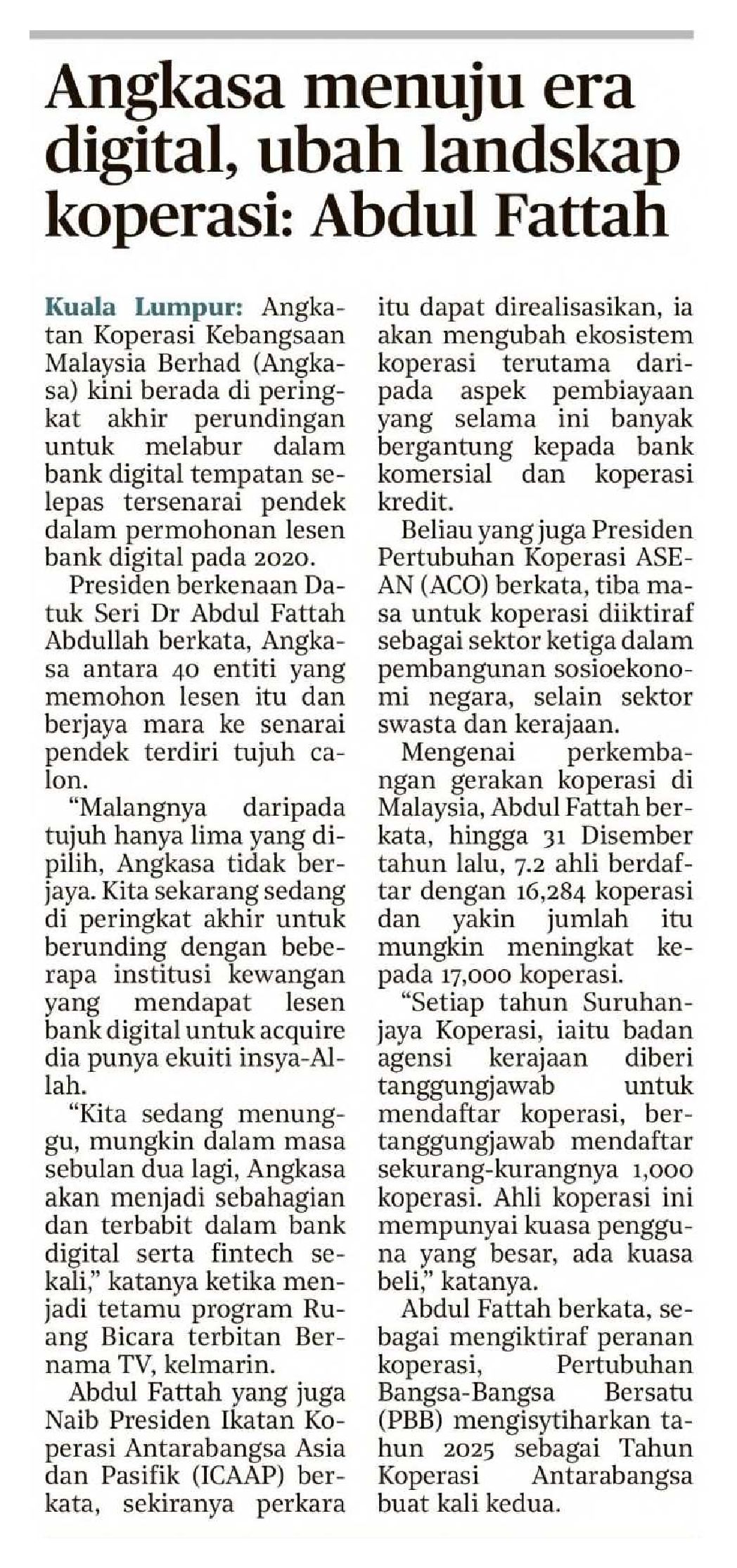 Angkasa menuju era digital, ubah landskap koperasi: Abdul Fattah |