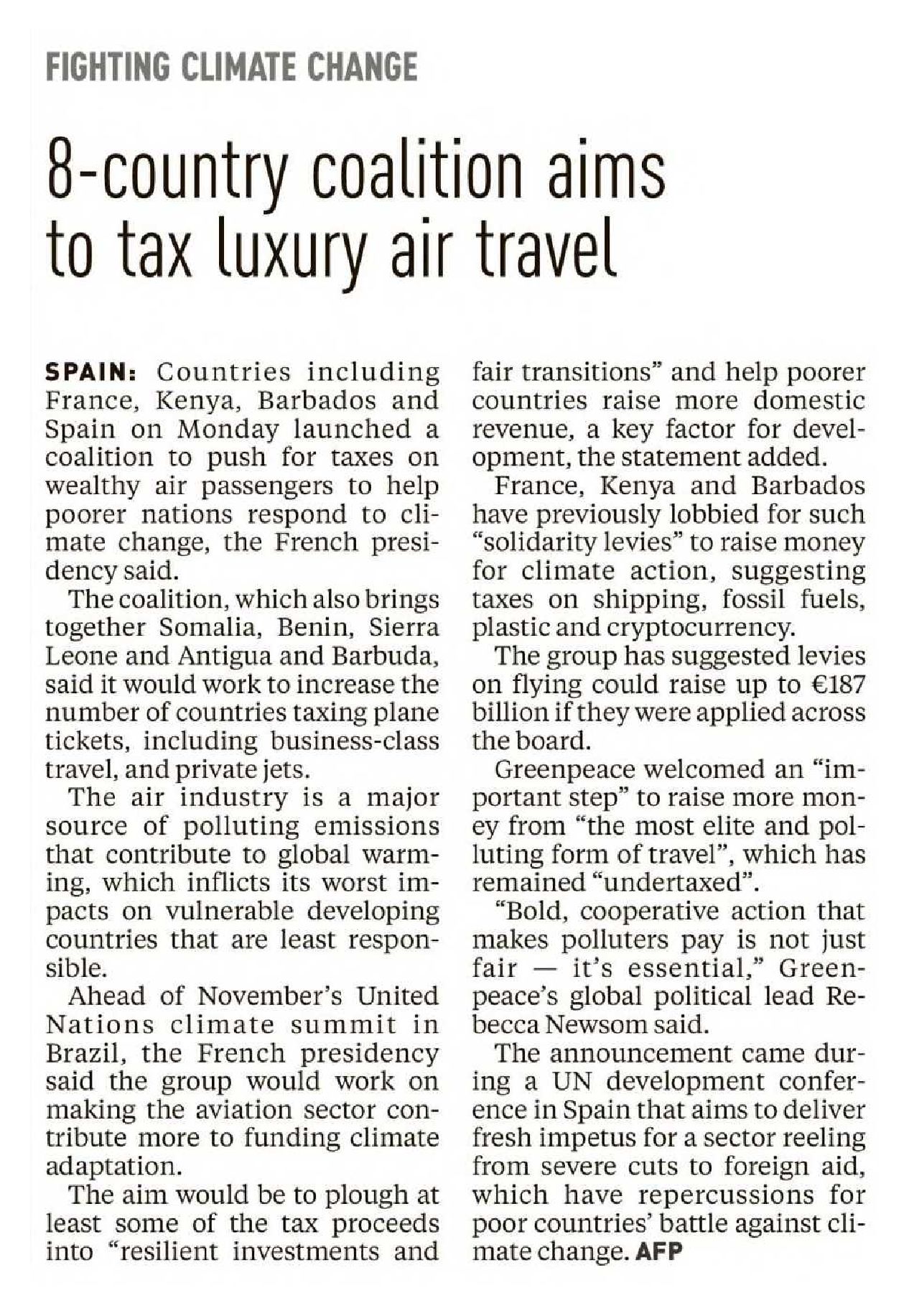 8-country coalition aims to tax luxury air travel |