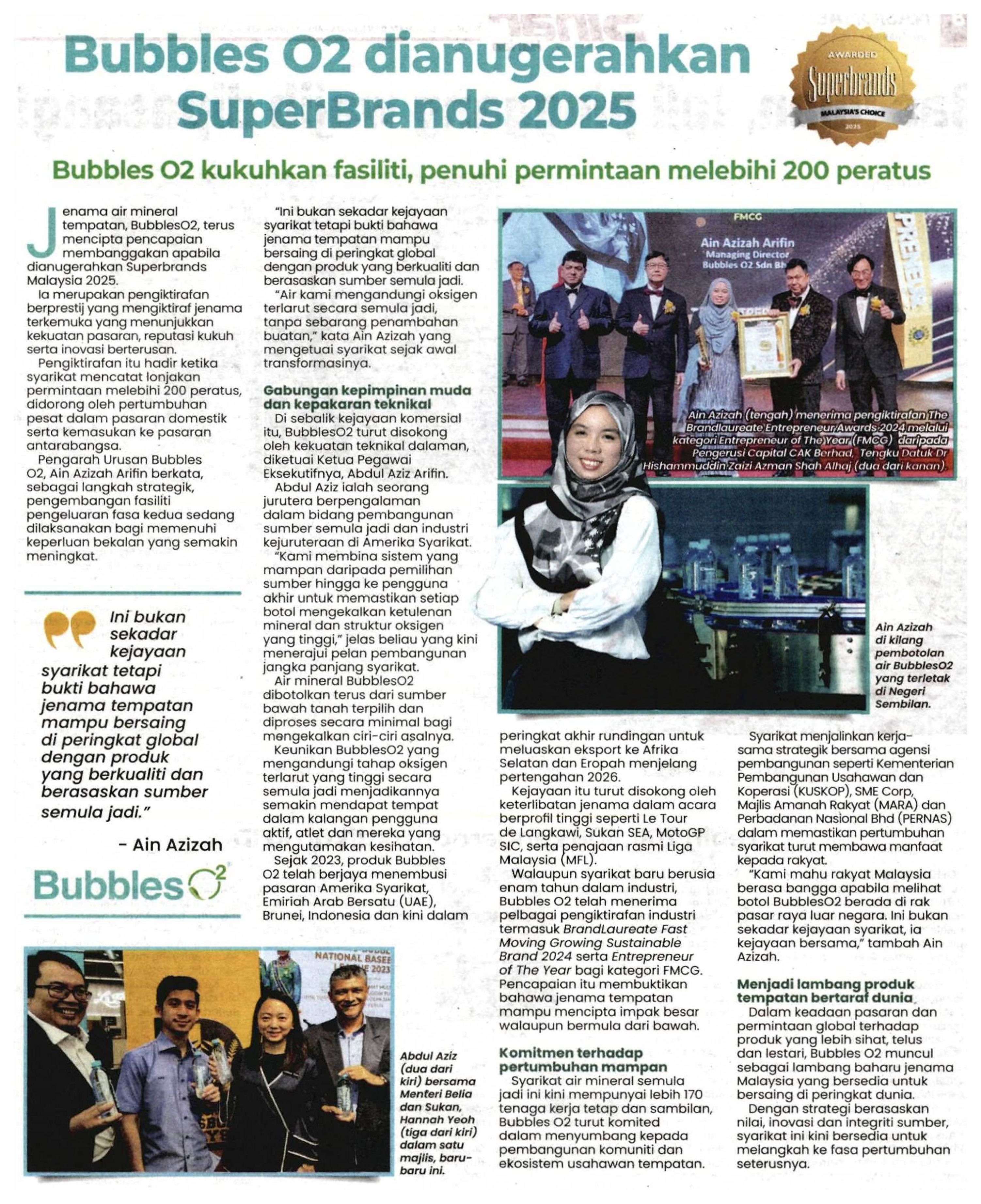 Bubbles 02 dianugerahkan SuperBrands 2025 |