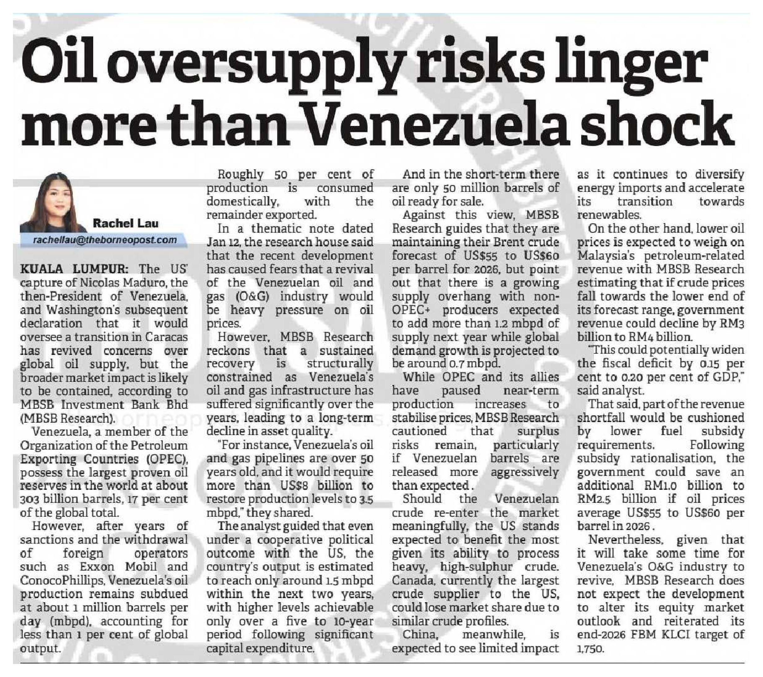 21/01/2026 The Borneo Post Sabah Oil oversupply risks linger more than Venezuela shock