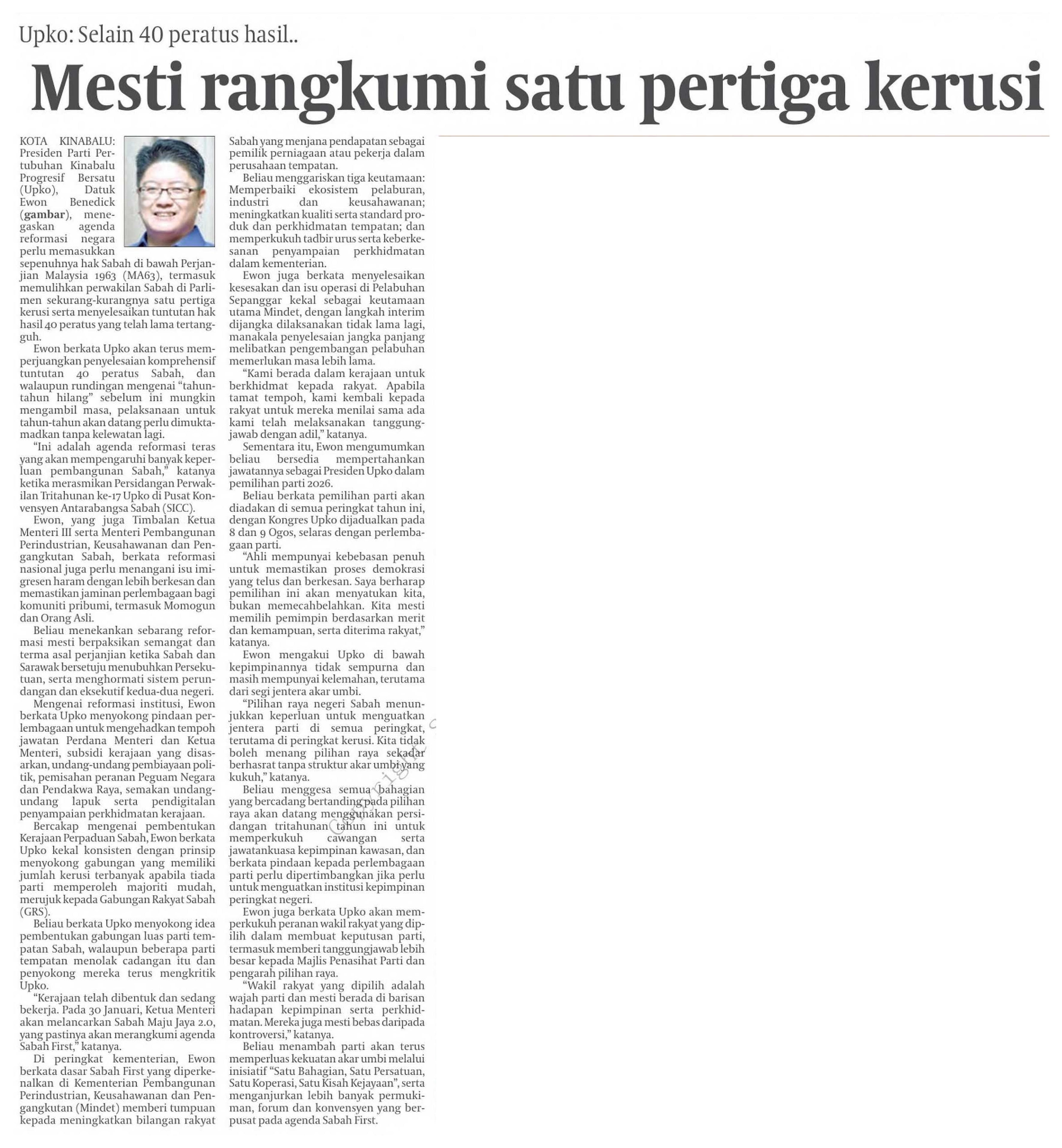 21/01/2026 Daily Express Mesti rangkumi satu pertiga kerus i