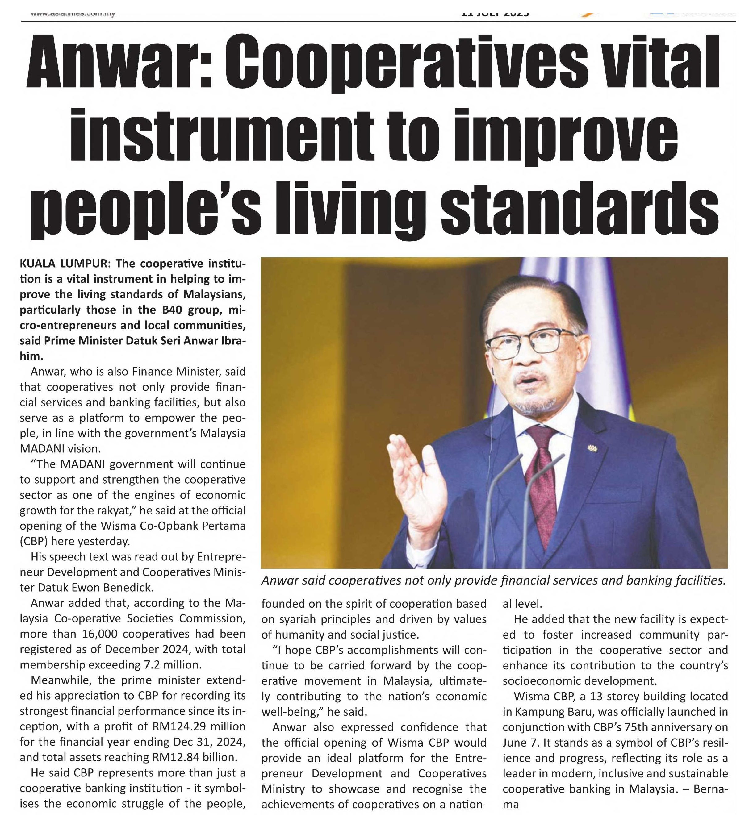 11/7/2025 Asia Times (Pulse) Anwar: Cooperatives vital instrument to improve people’s living standards