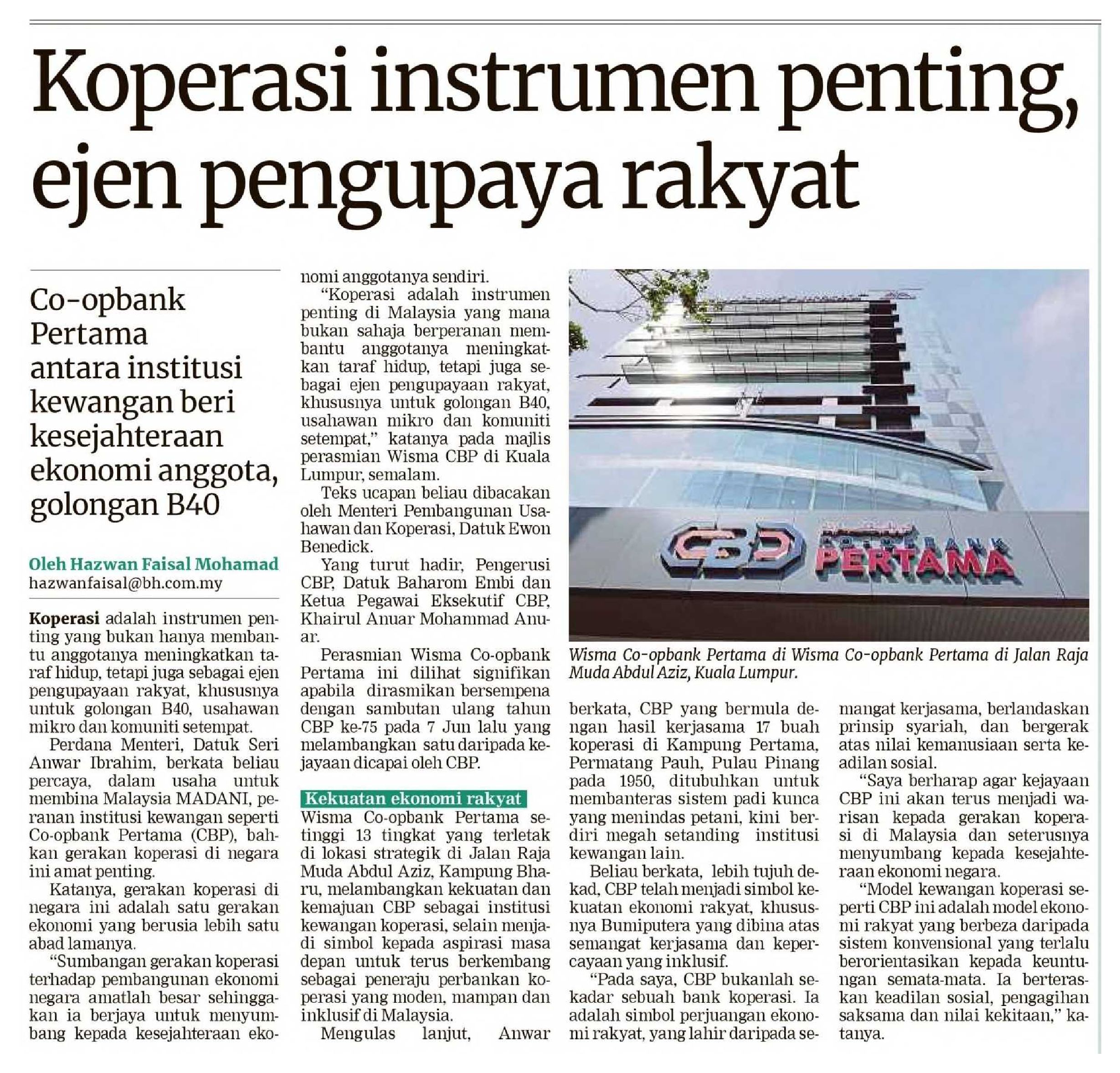 10/7/2025 Berita Harian Online Koperasi instrumen penting, ejen pengupaya rakyat khususnya B40 - PM Anwar