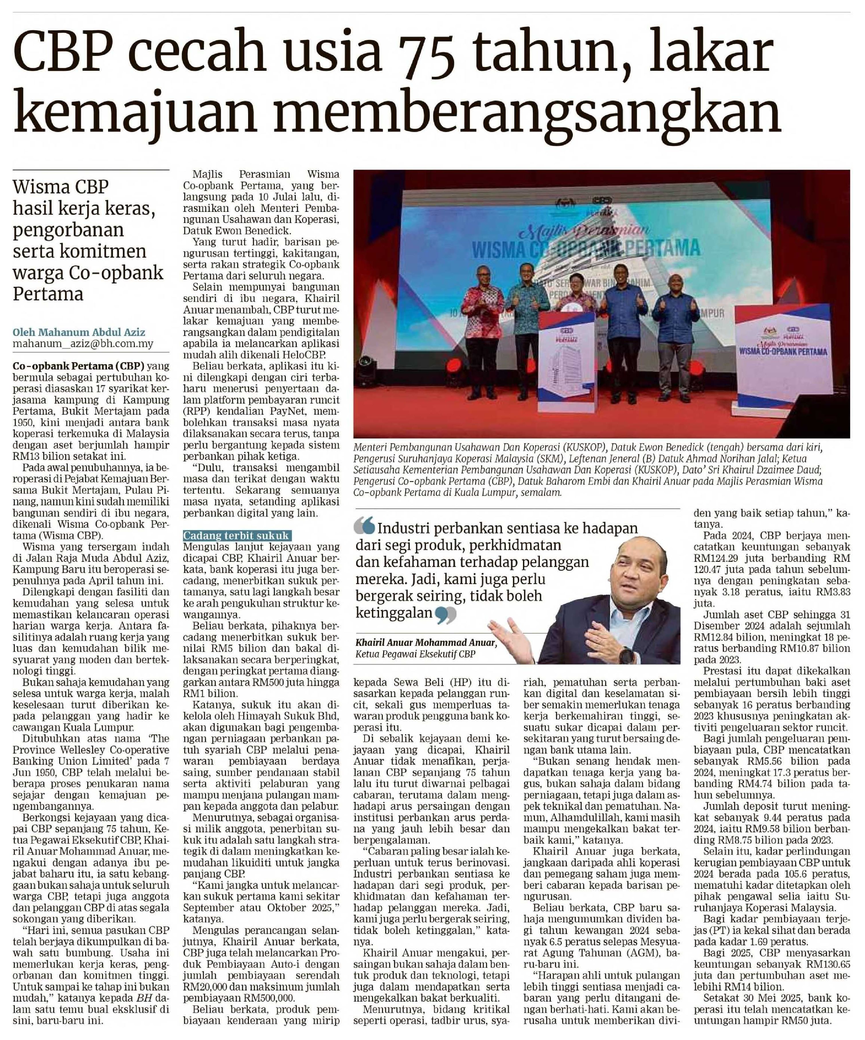11/7/2025 Berita Harian CBP cecah usia 75 tahun, lakar kemajuan memberangsangkan