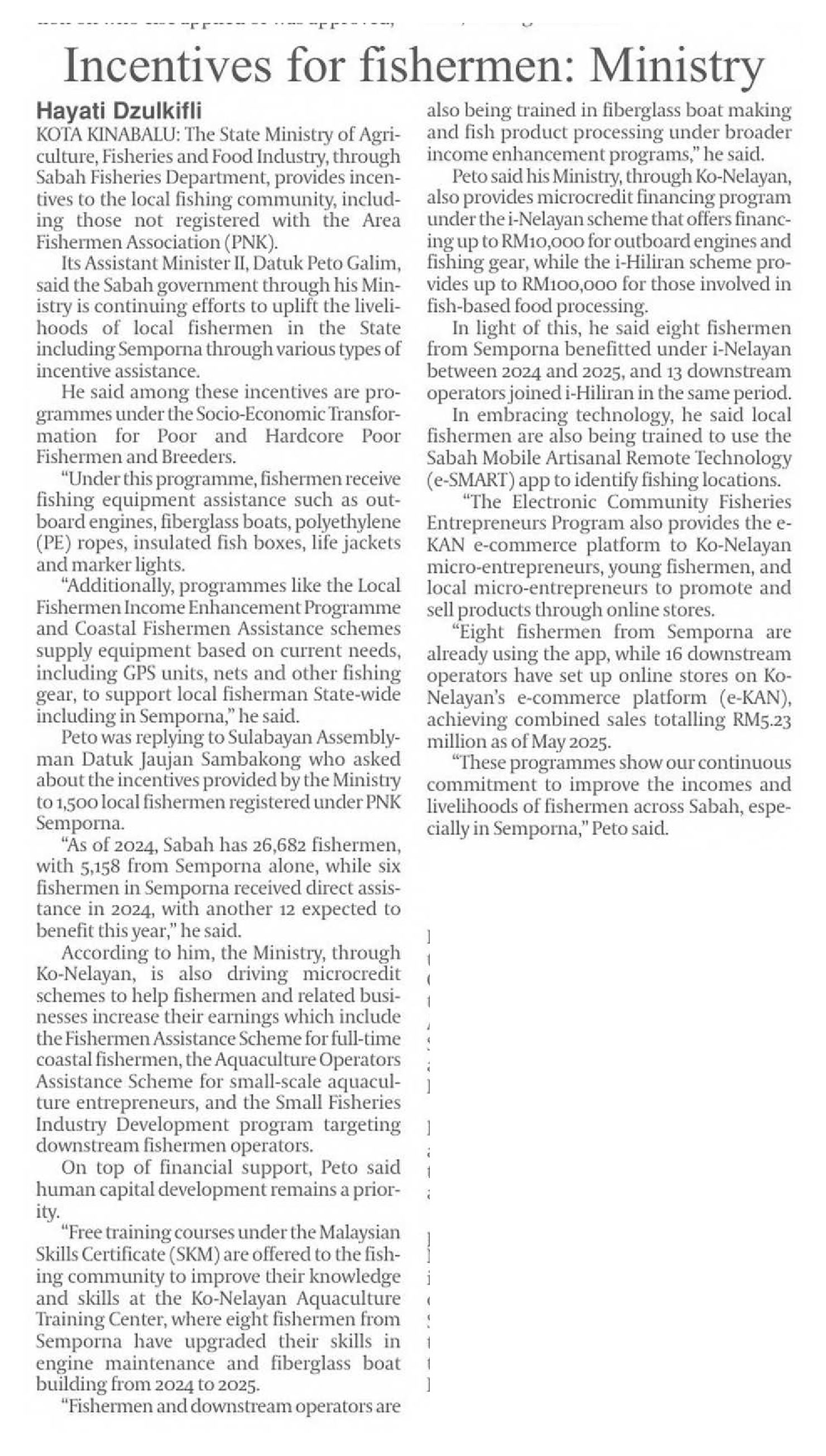11/7/2025 Daily Express Incentives for fishermen: Ministry