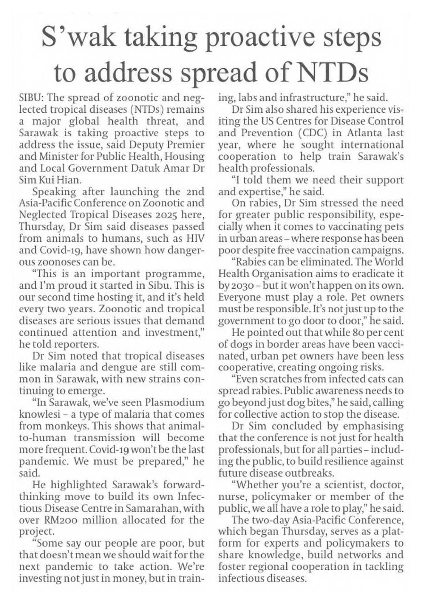 11/7/2025 Daily Express S’wak taking proactive steps to address spread of NTDs