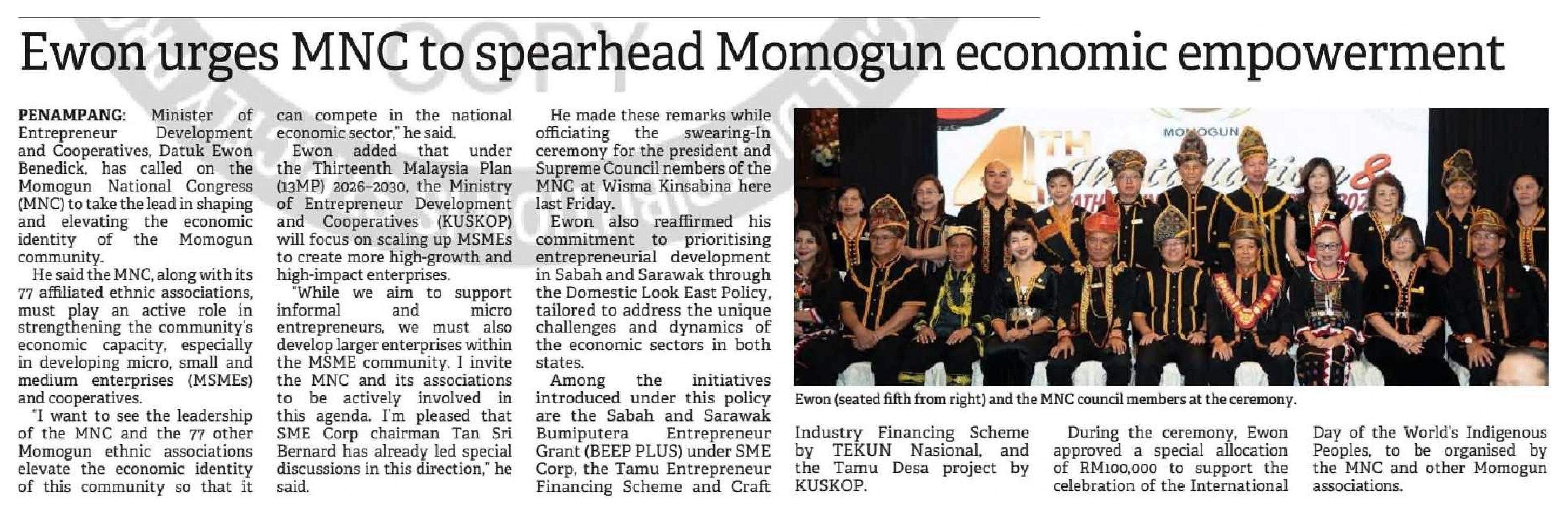 30/7/2025 Warta Oriental KUSKOP naik taraf 39 Tamu Desa di Sarawak