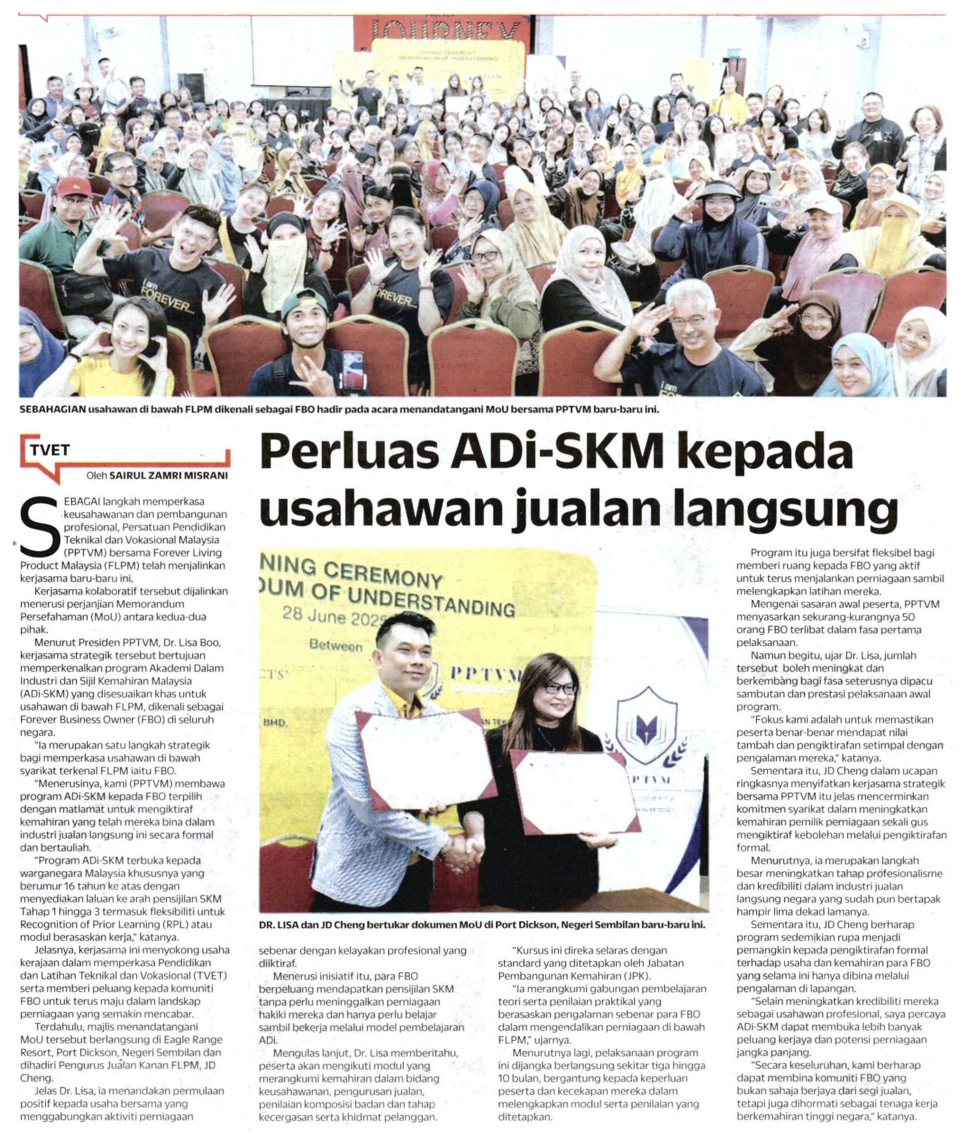 30/7/2025 Lumi News Malaysia Gov't fully funds TVET grads for MSU entrepreneurship studies