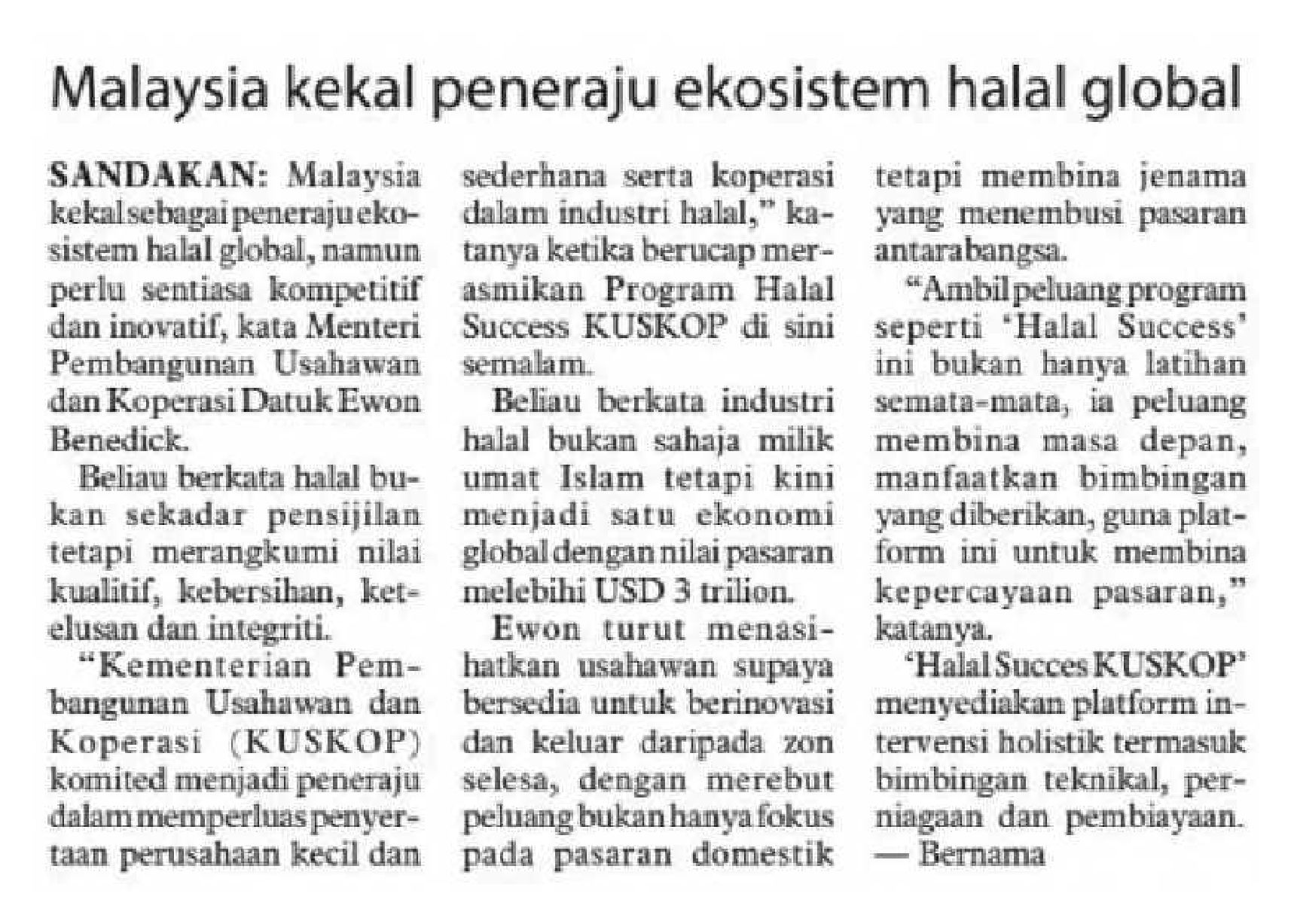 10/7/2025 Bernama Online KUSKOP Yakin Penurunan OPR Beri Kesan Positif Kepada PMKS