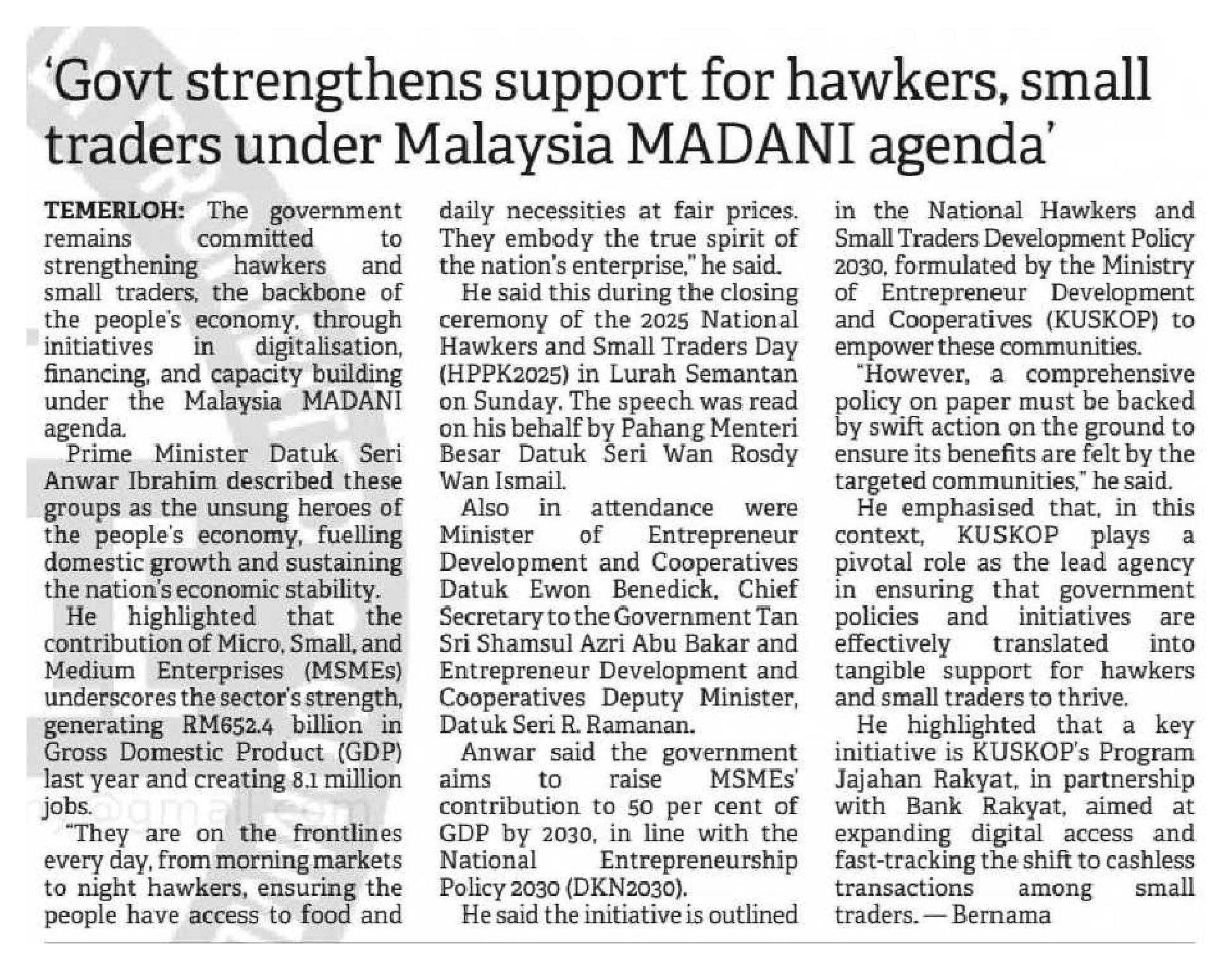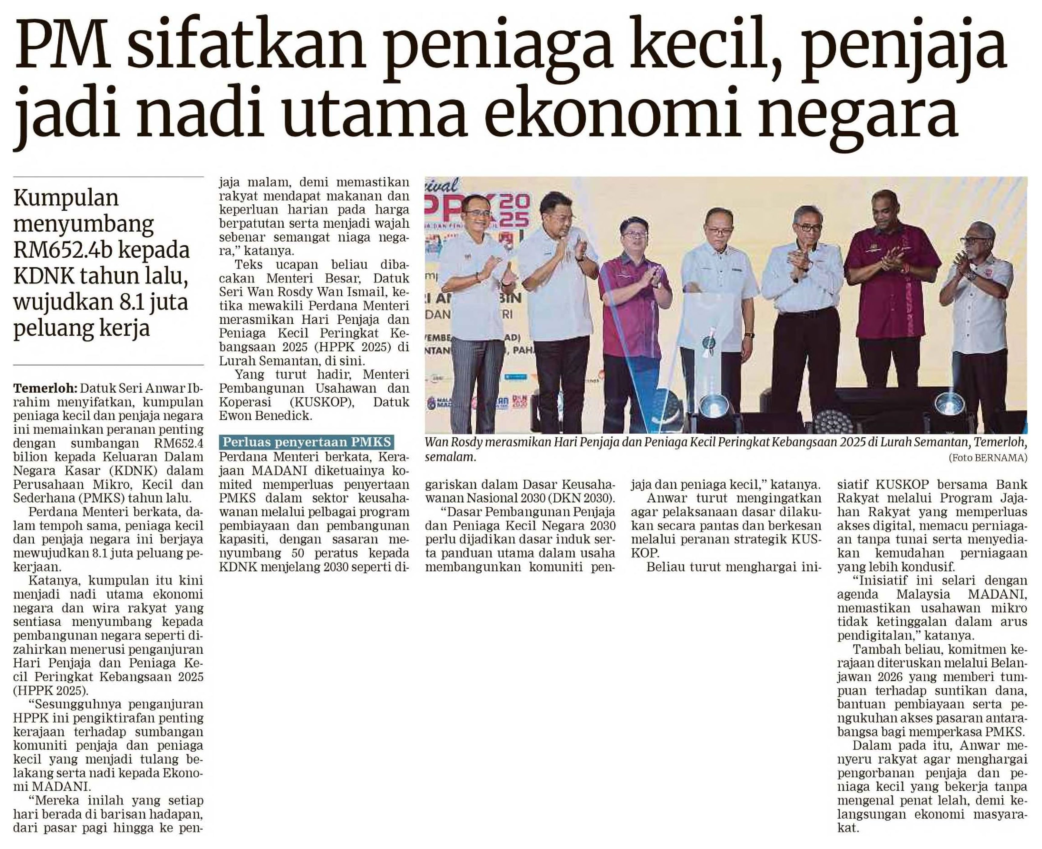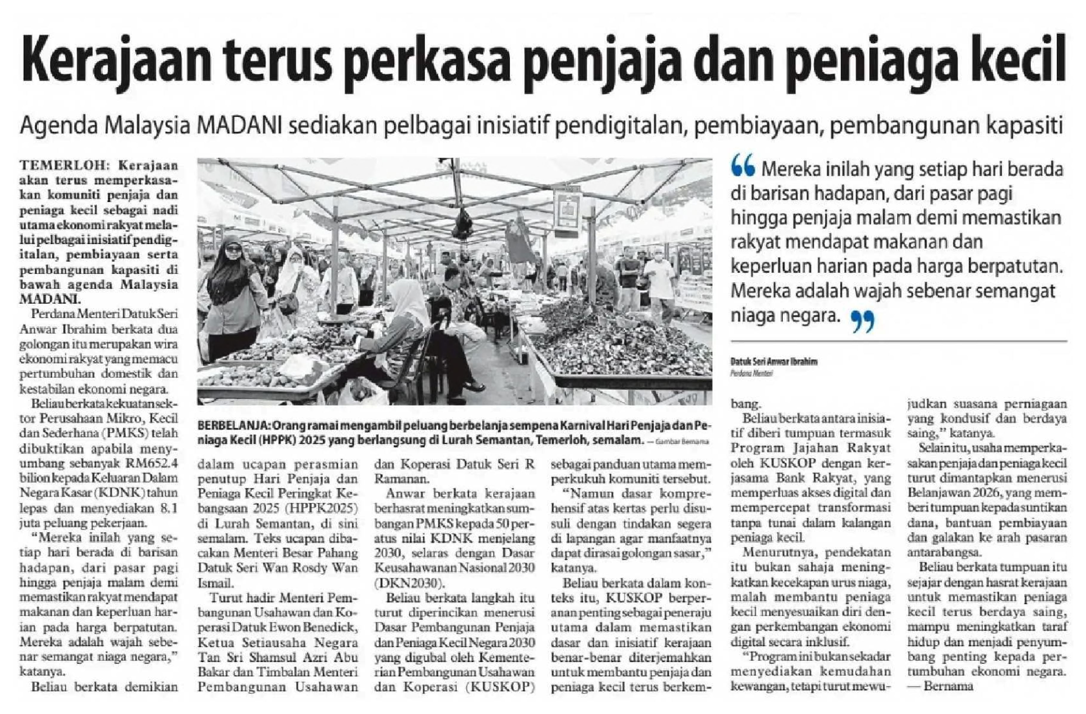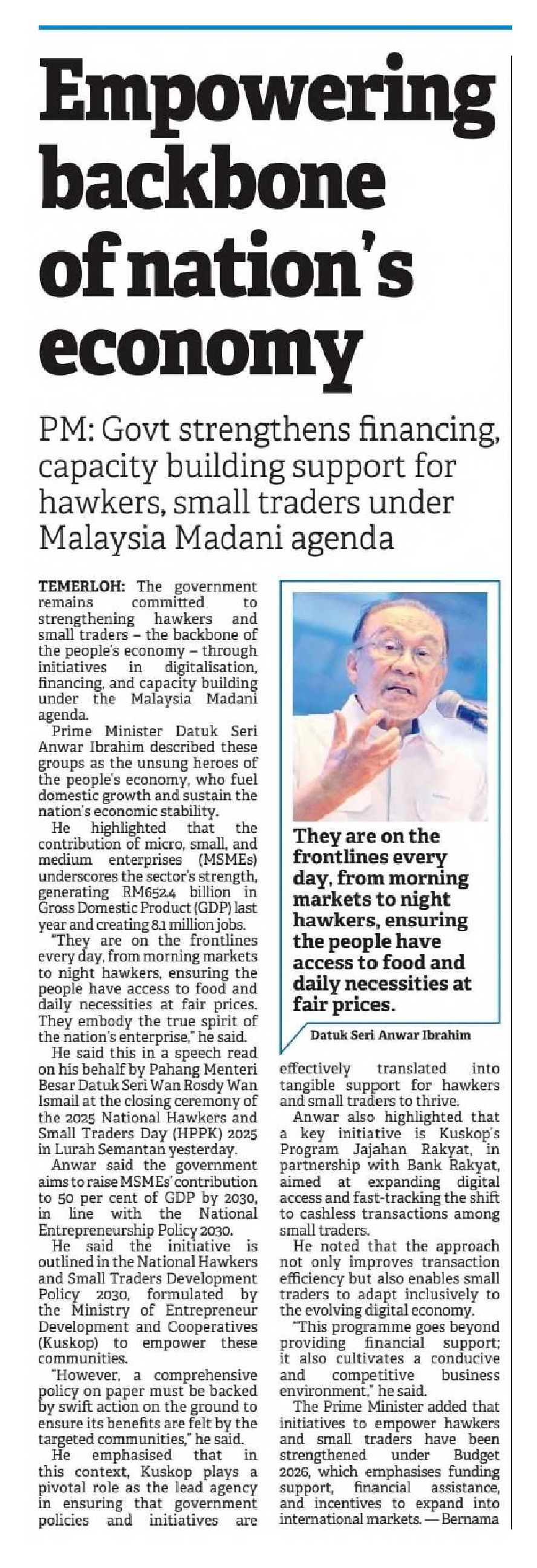 02/11/2025 Bernama Online Kerajaan Terus Perkasa Penjaja, Peniaga Kecil Menerusi Agenda Malaysia MADANI - Anwar