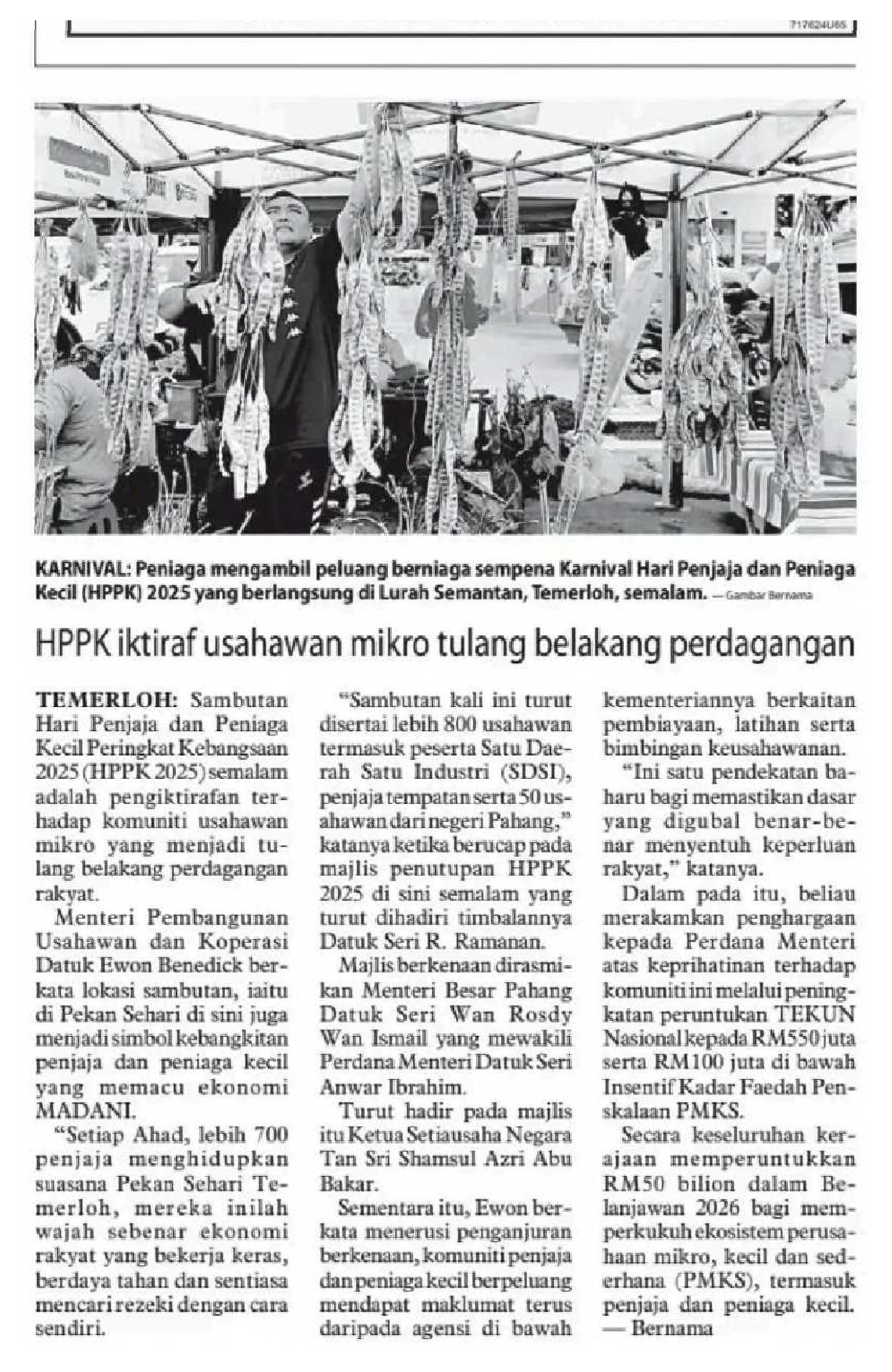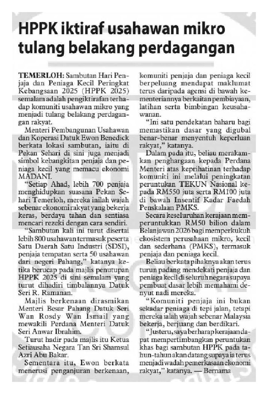 02/11/2025 Bernama Online HPPK Iktiraf Usahawan Mikro Tulang Belakang Perdagangan