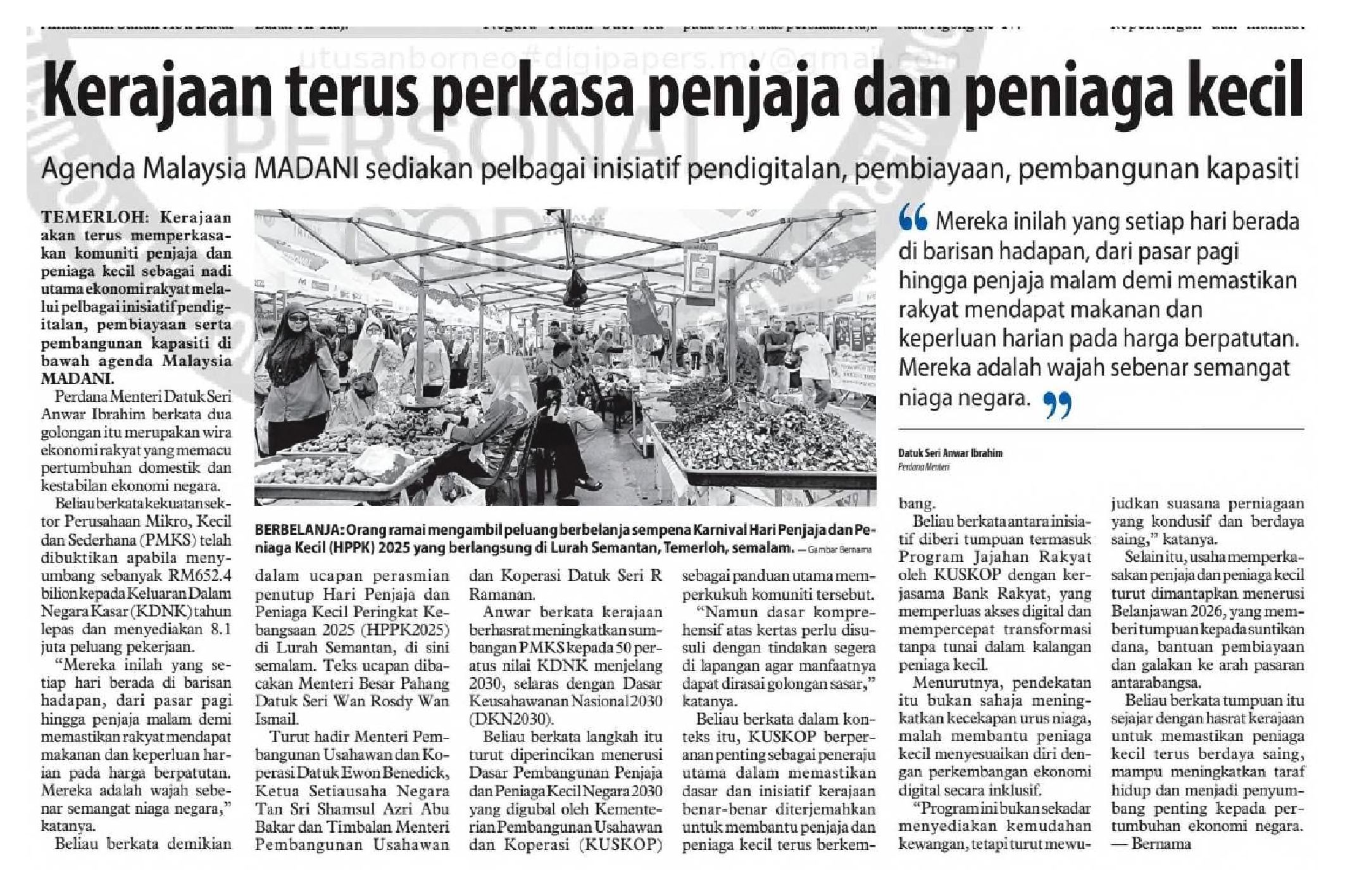 02/11/2025 www.utusanborneo.com.my Kerajaan terus perkasa penjaja, peniaga kecil menerusi agenda Malaysia MADANI: Anwar