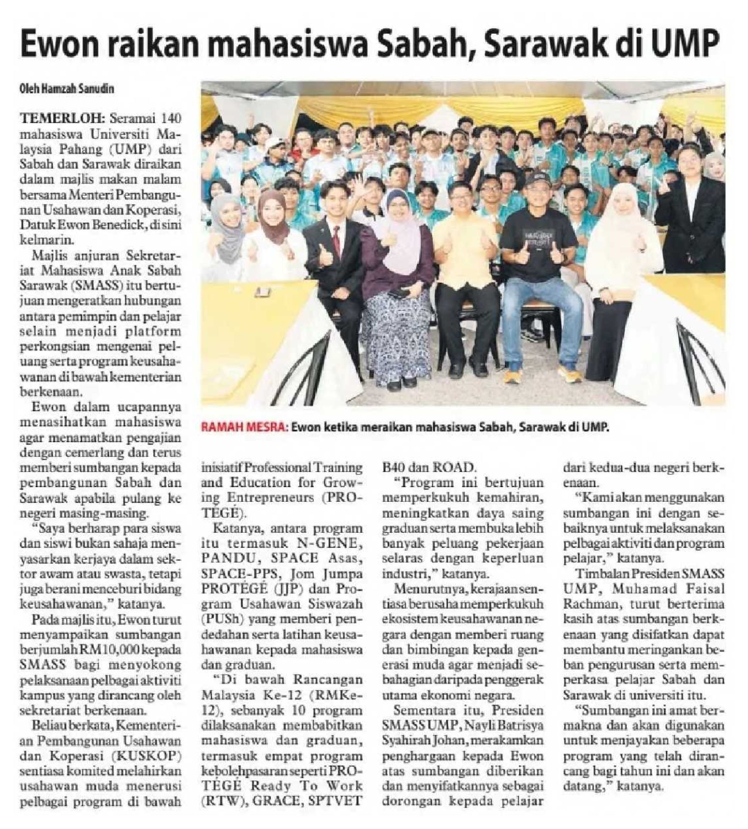 02/11/2025 Sabah News Ewon Kongsi Aspirasi Keusahawanan Bersama 140 Mahasiswa Sabah dan Sarawak di UMP