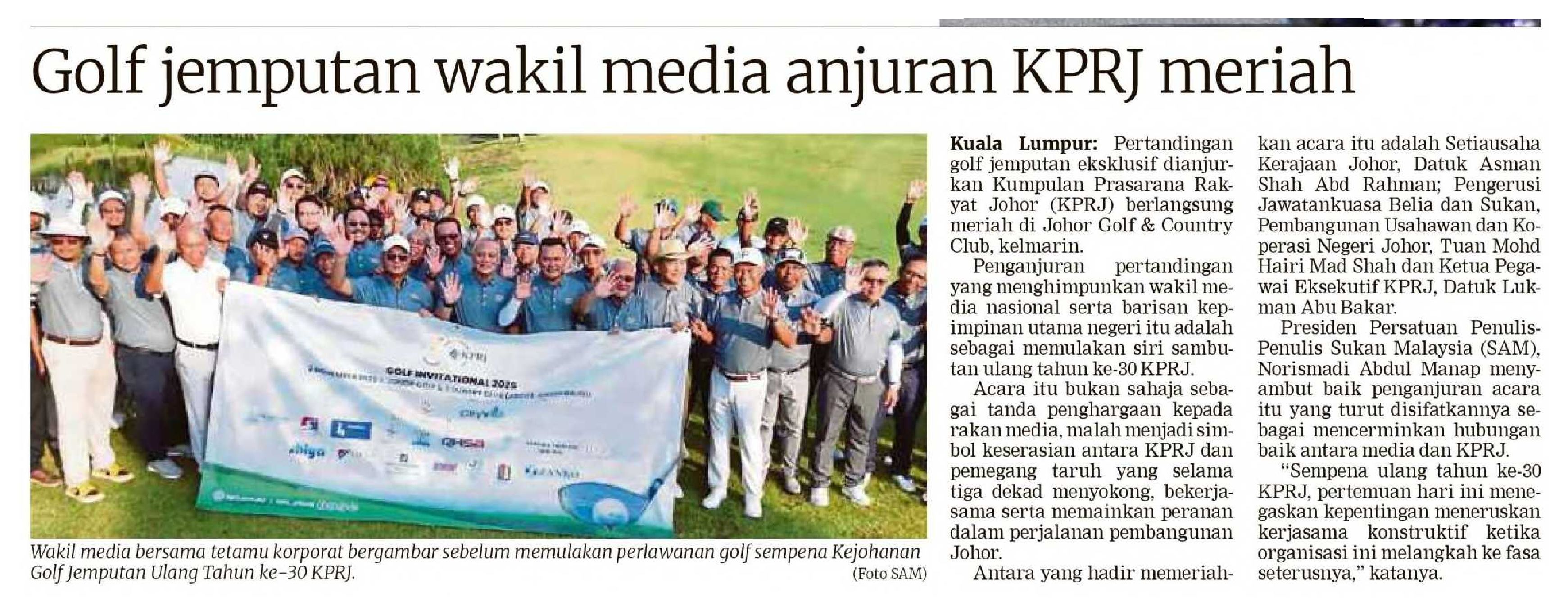 06/11/2025 Utusan Malaysia Online KPRJ anjur kejohanan golf sempena 30 tahun penubuhan