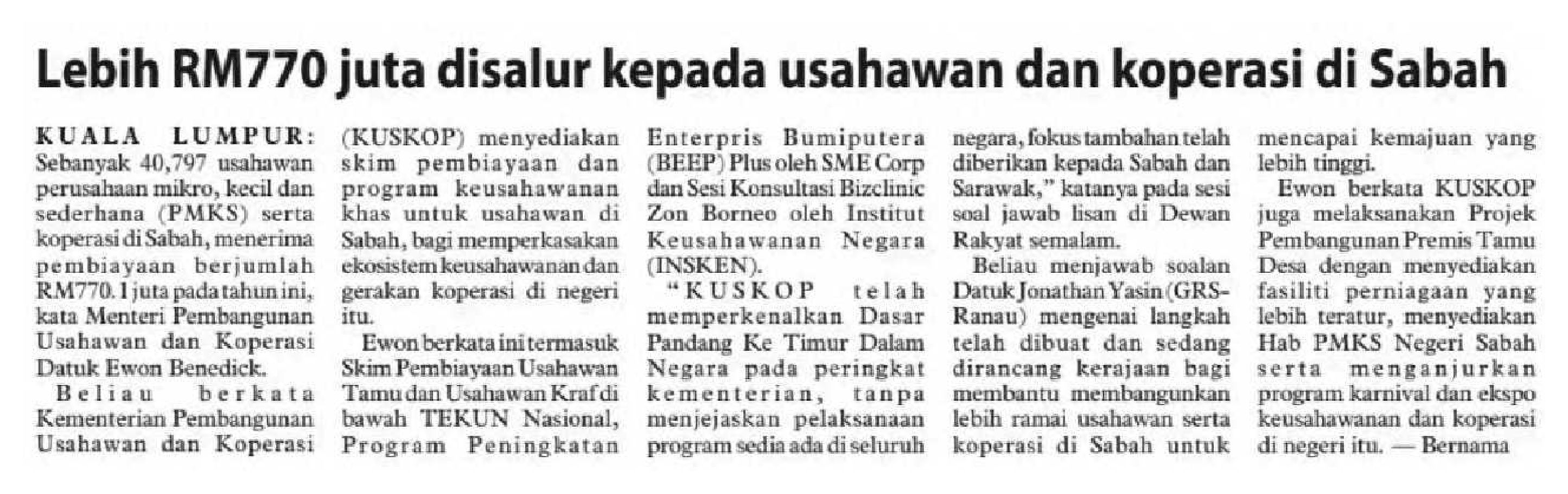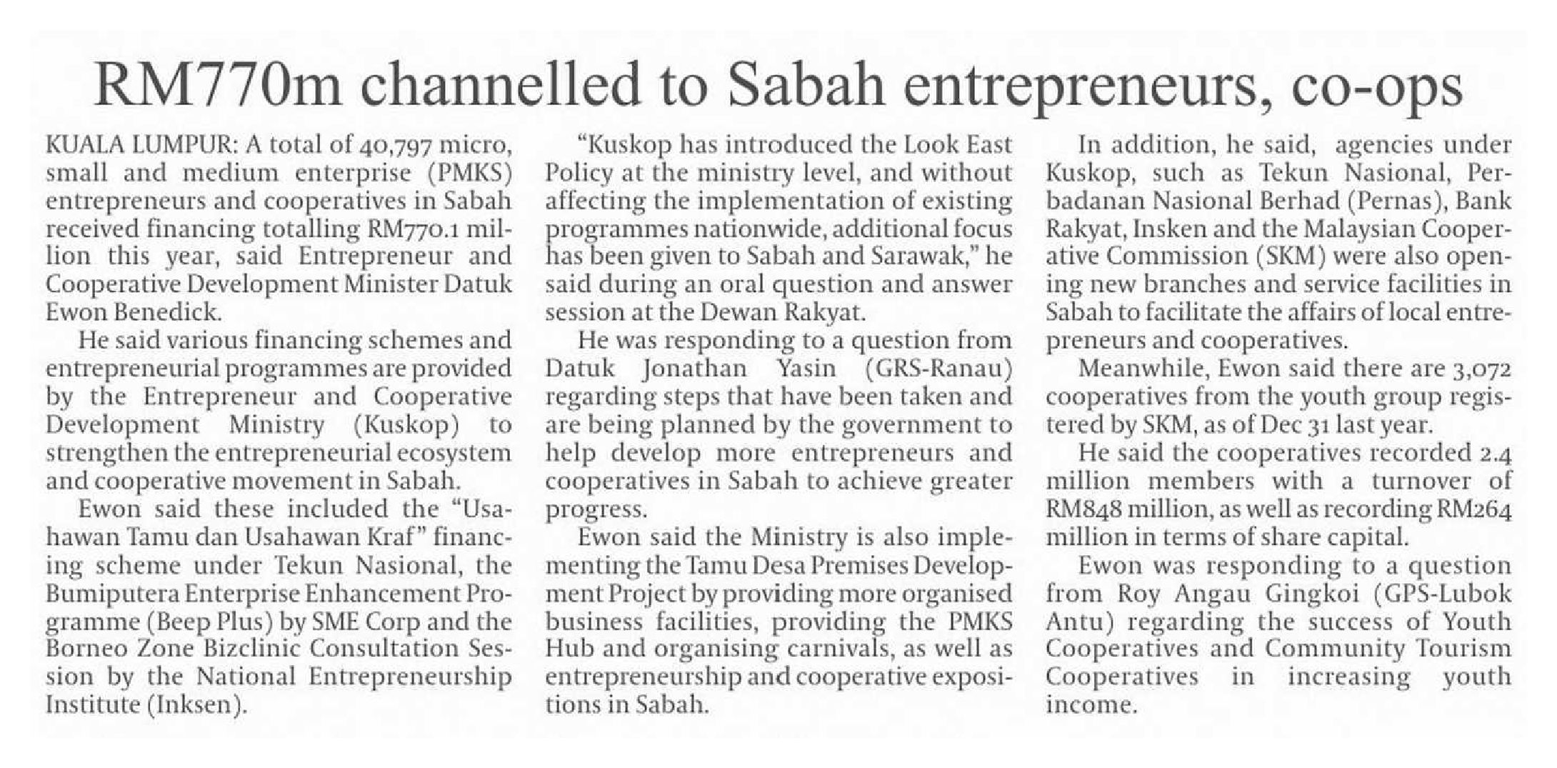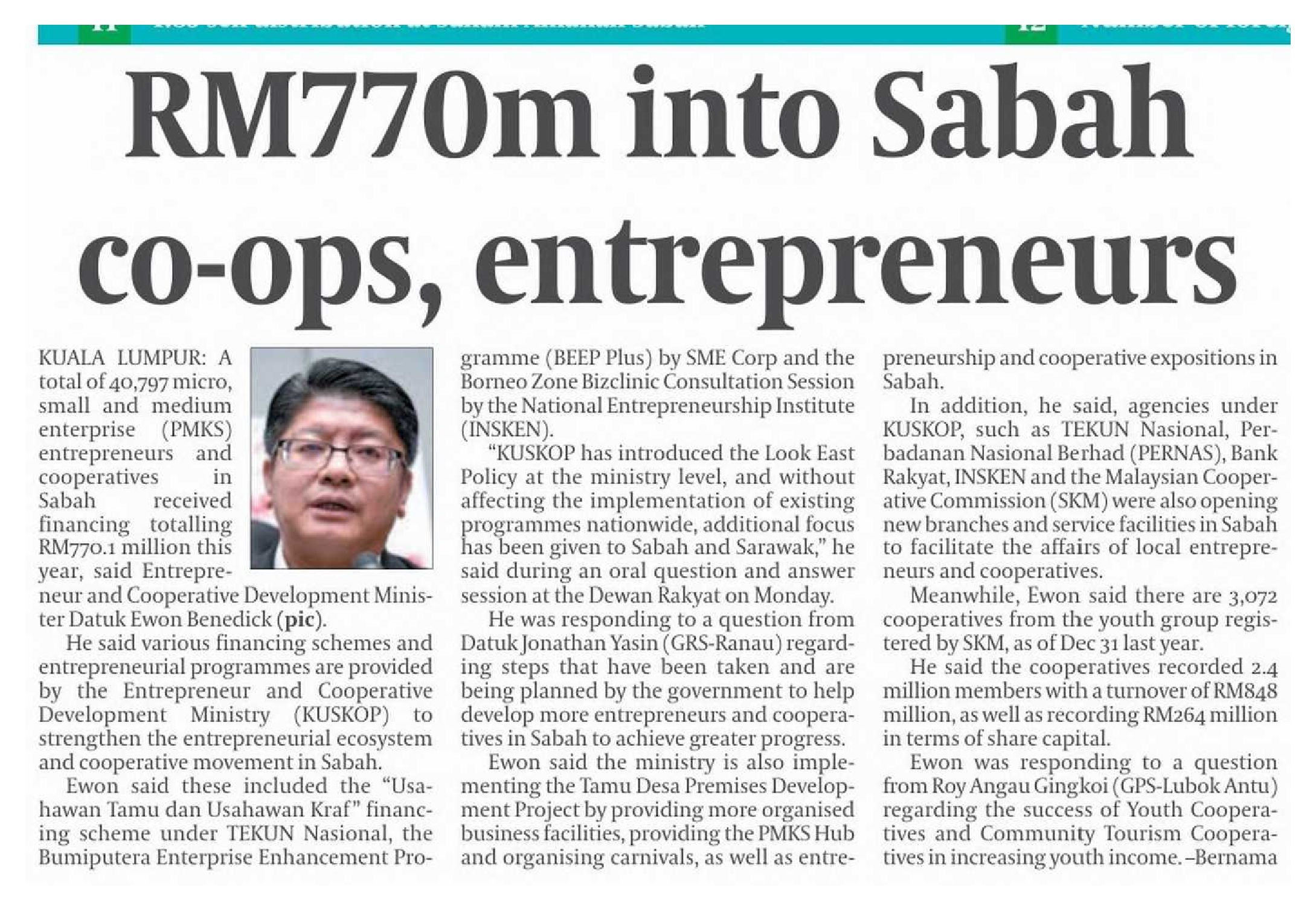 04/11/2025 Daily Express RM770m into Sabah co-ops, entrepreneurs