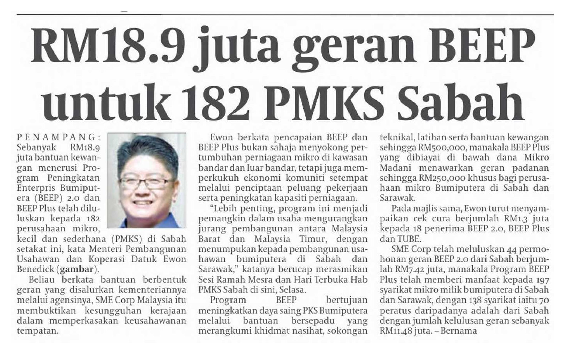 04/11/2025 www.bernamabiz.com RM18.9 Juta Geran Beep Diluluskan Kepada 182 PMKS Sabah