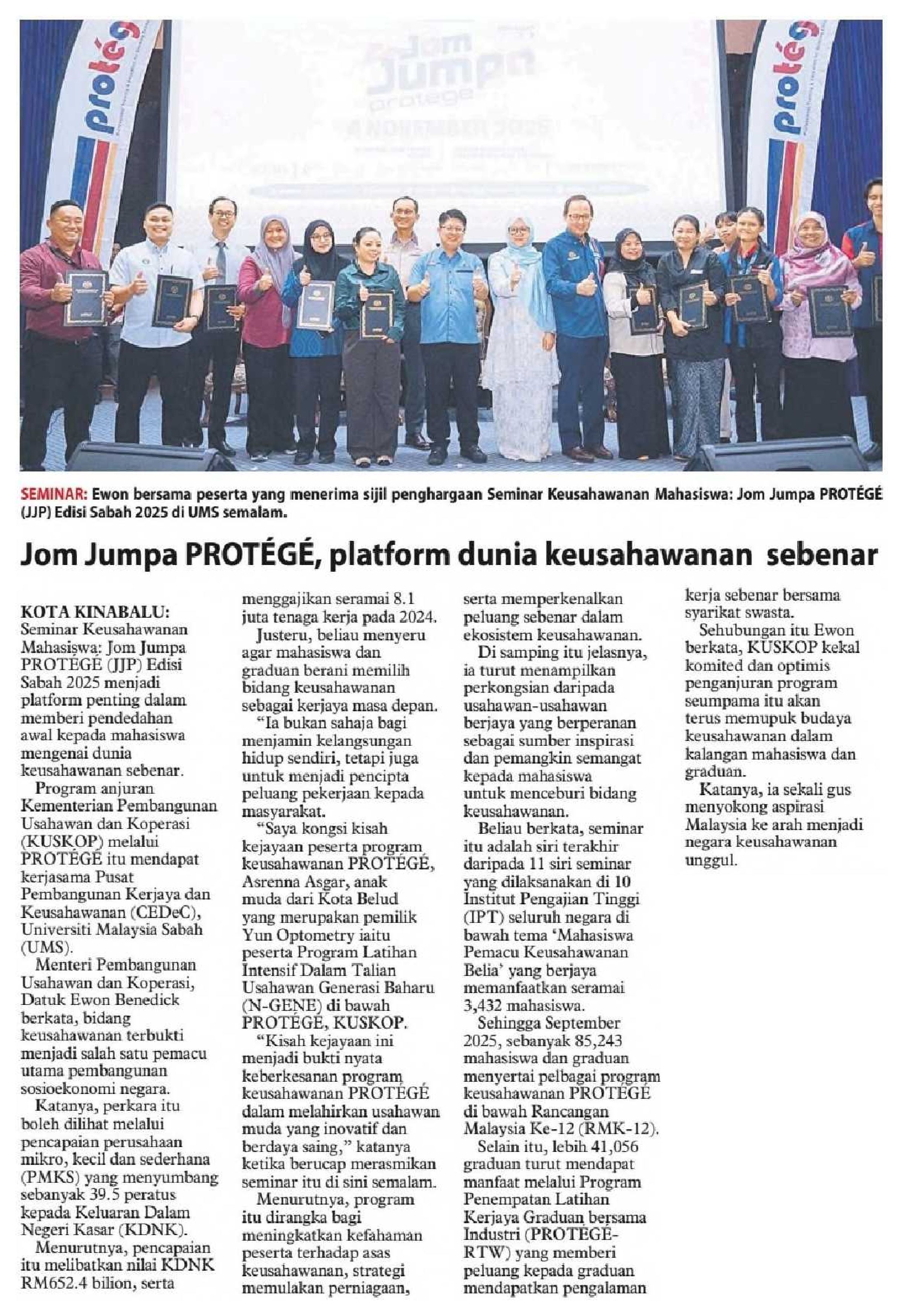 04/11/2025 www.utusanborneo.com.my Jom Jumpa PROTéGé, platform dunia keusahawanan sebenar