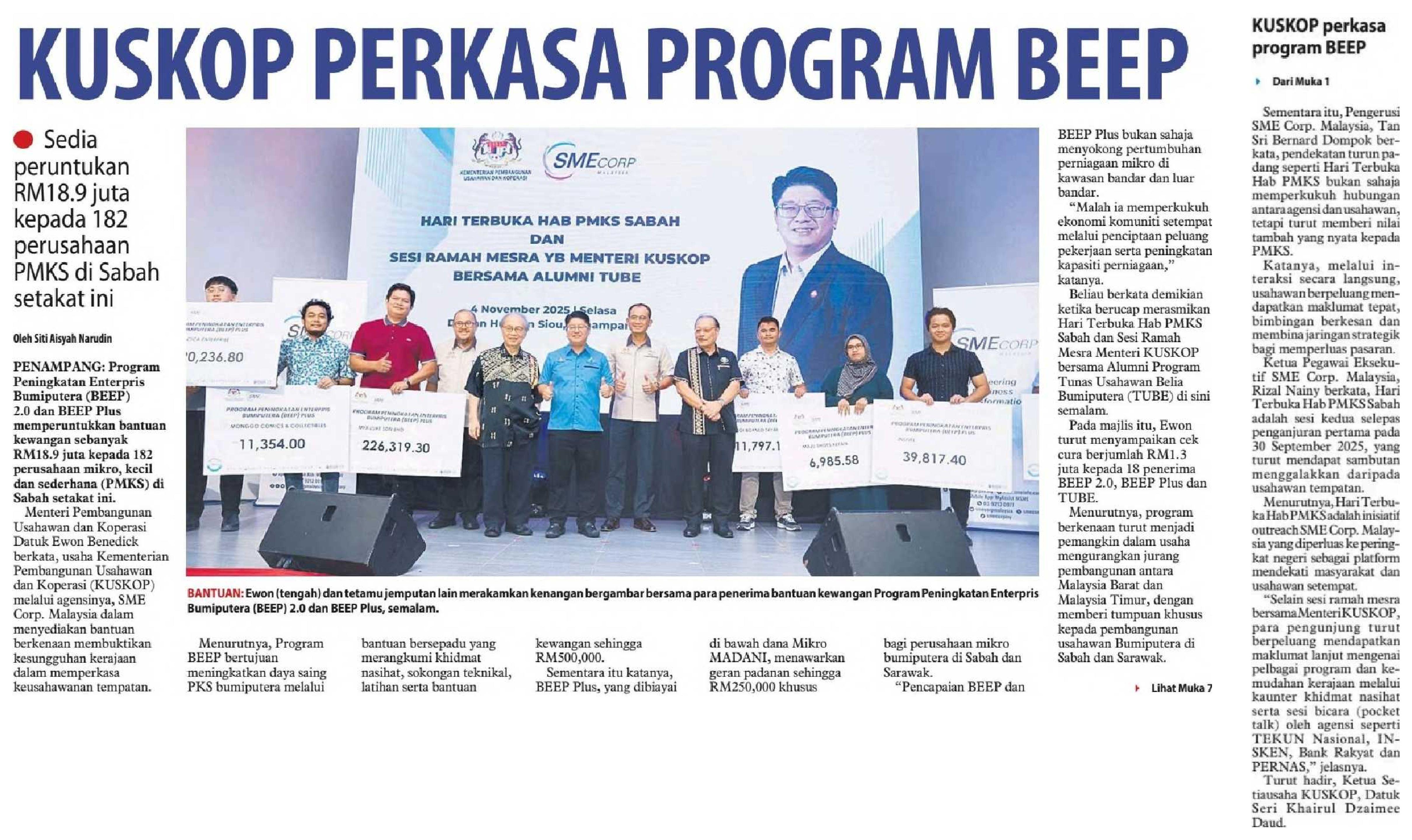 04/11/2025 www.utusanborneo.com.my KUSKOP sedia peruntukan RM18.9 juta perkasa Program BEEP di Sabah