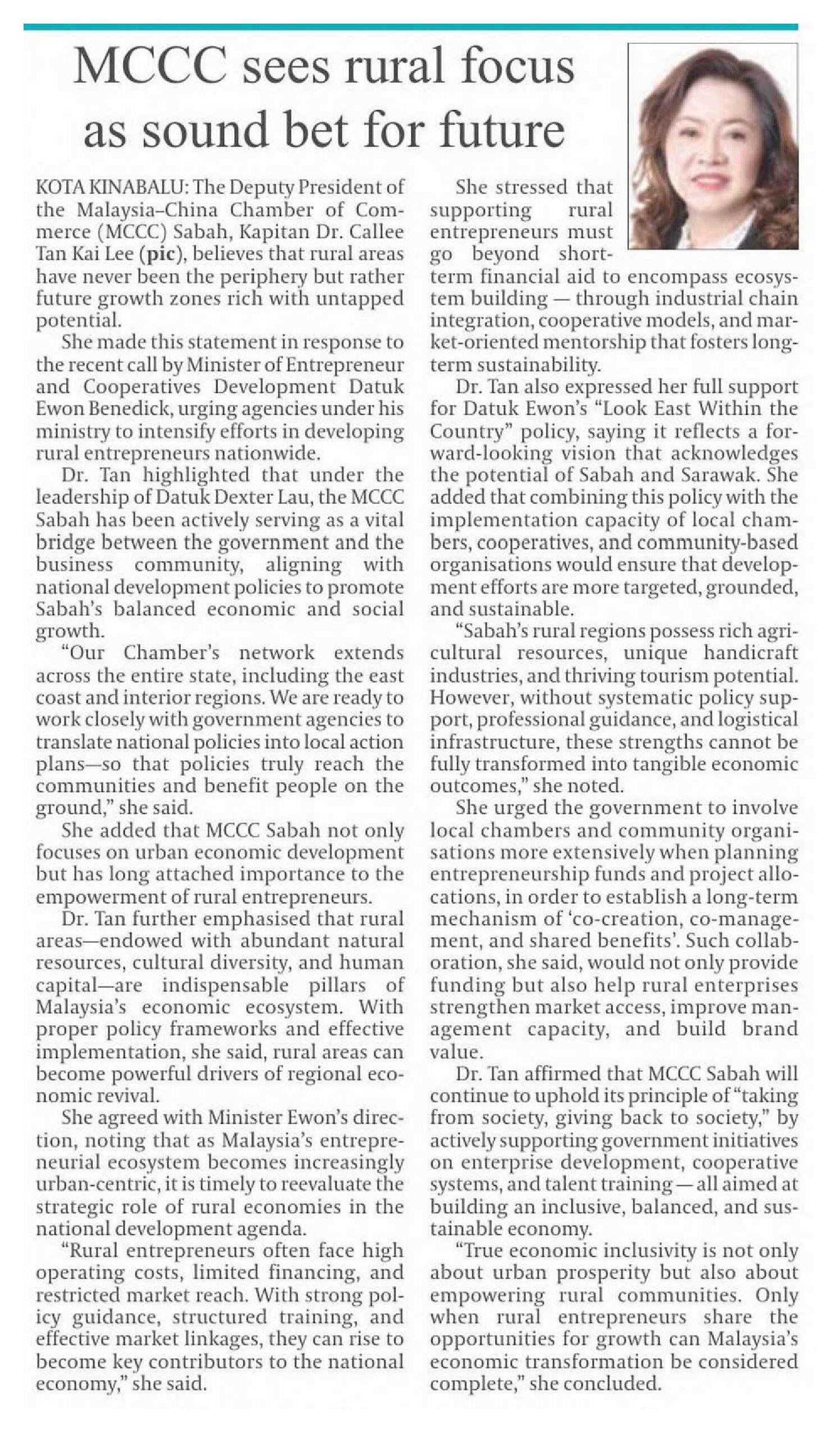 06/11/2025 Daily Express - Online Malaysia–China Chamber of Commerce sees rural focus as sound bet for future