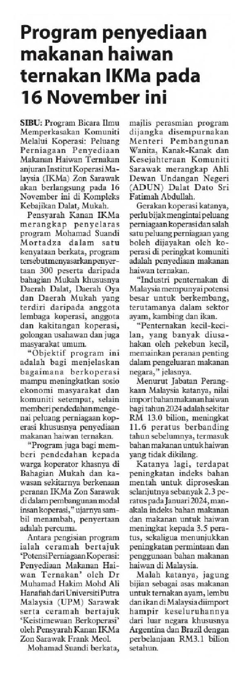 14/11/2025 Utusan Borneo Sarawak IKMa Zon Sarawak anjur Program Bicara llmu pada 16 November ini