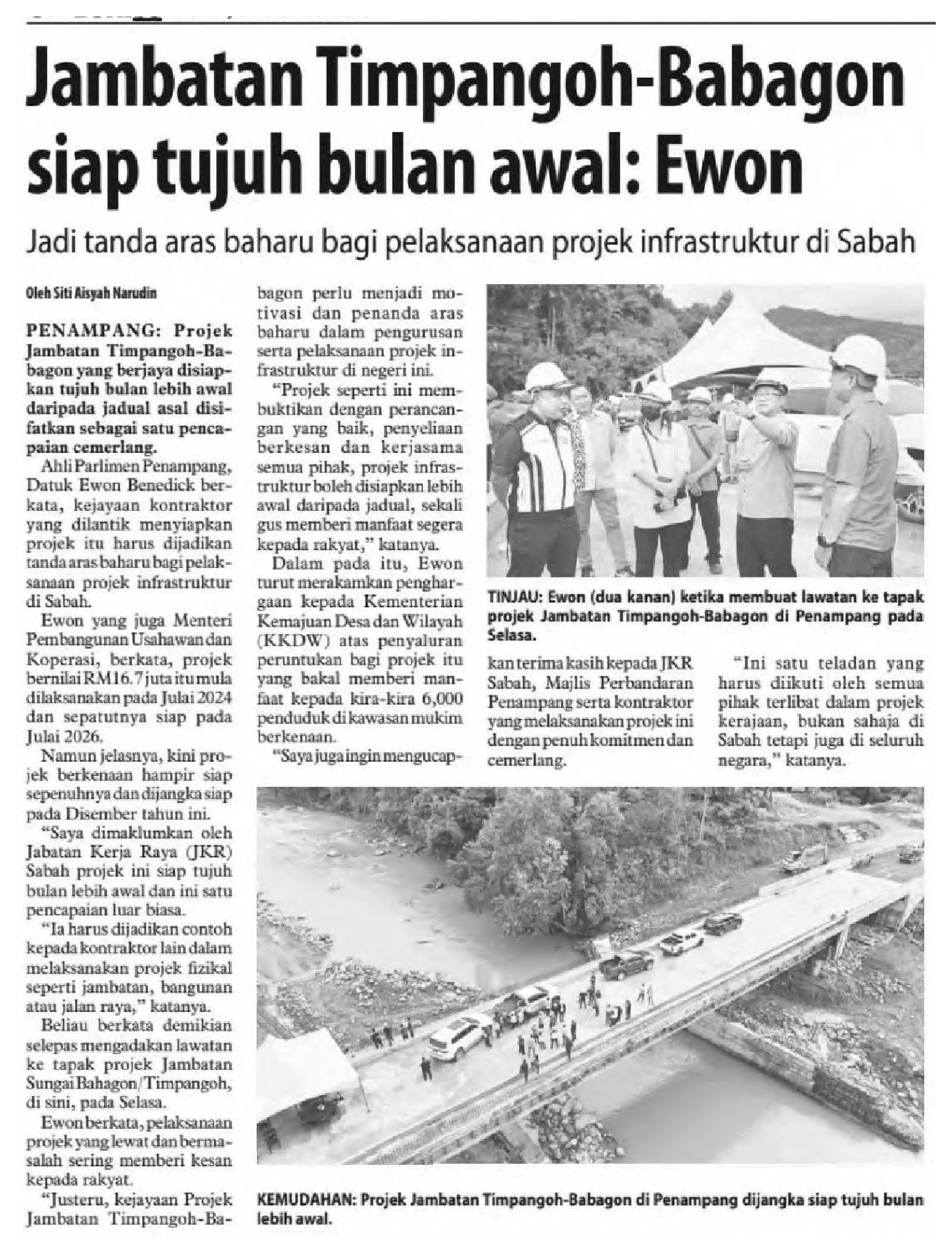 04/11/2025 Borneo Daily Bulletin Projek Jambatan Timpangoh-Babagon harus jadi tanda aras projek infra di Sabah, siap tujuh bulan lebih awal – Ewon