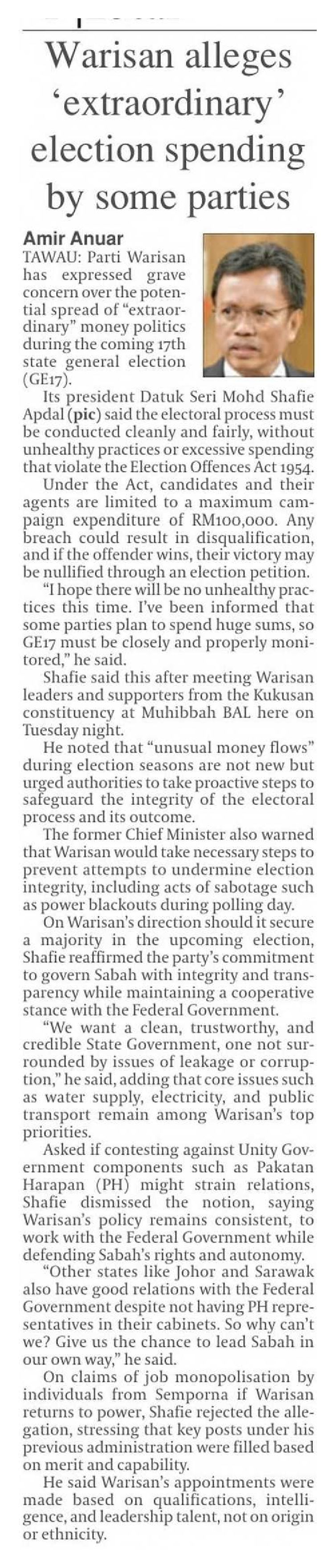 07/11/2025 Daily Express Waris an alleges ‘extraordinary’ election spending by some parties