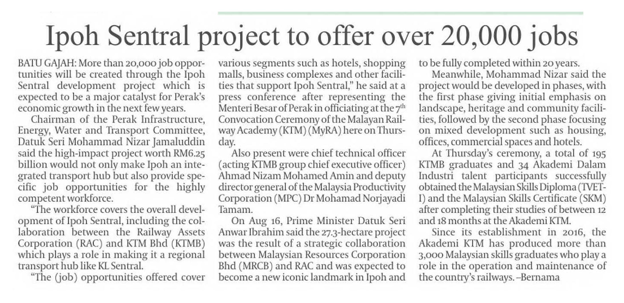 07/11/2025 Daily Express Ipoh Sentral project to offer over 20,000 jobs