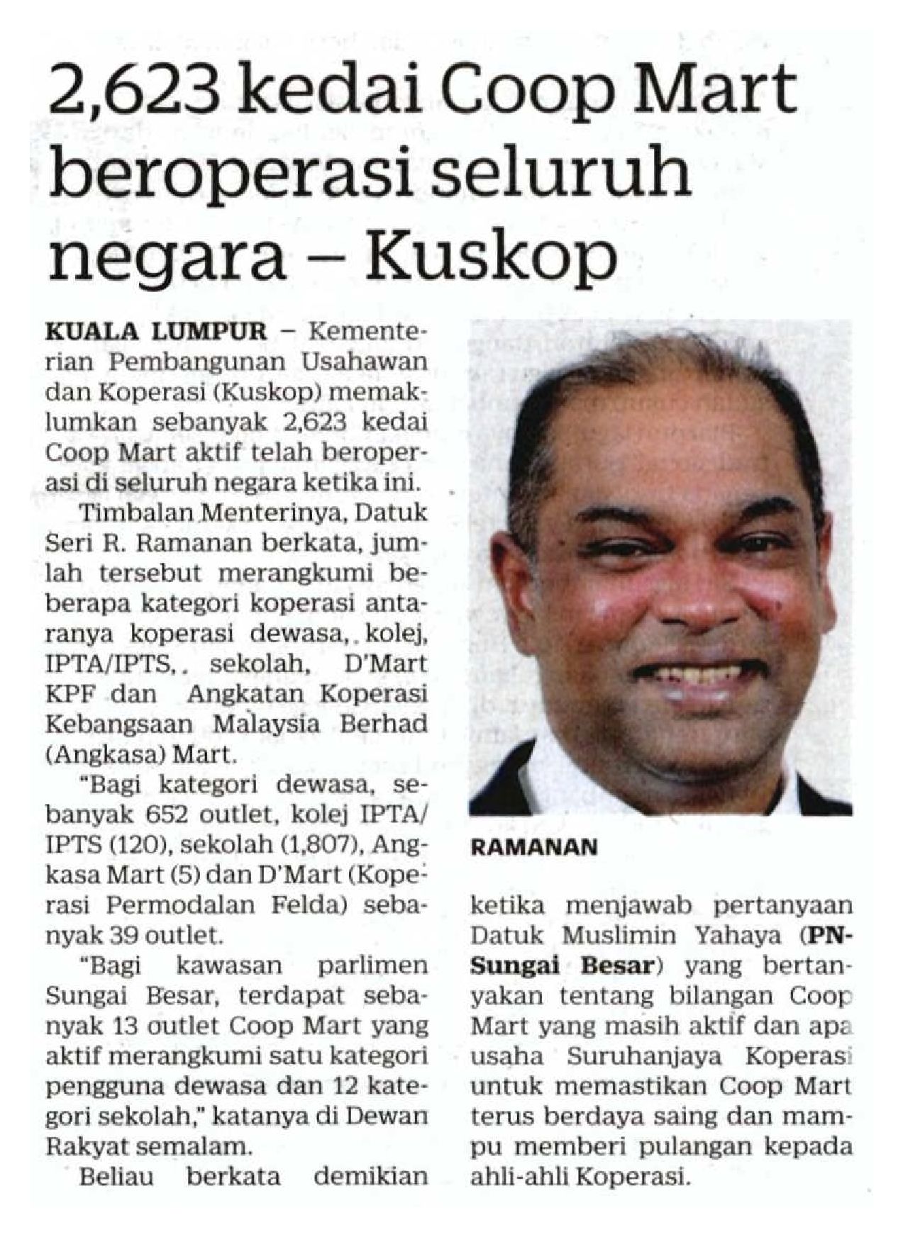 06/11/2025 Utusan Malaysia Online PARLIMEN: 2,623 Coop Mart aktif di seluruh negara