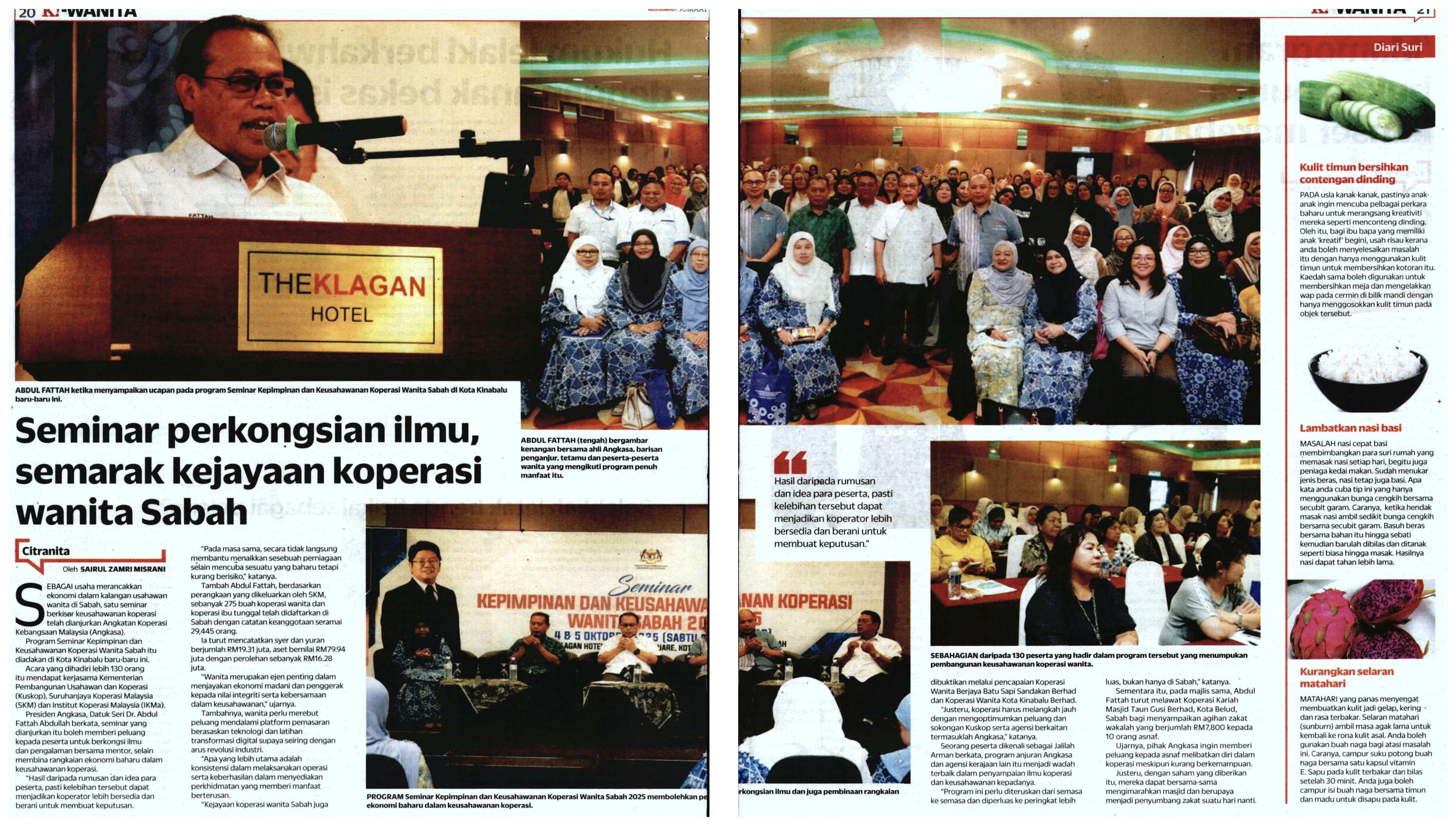 07/11/2025 Kosmo Seminar perkongsian ilmu semarak kejayaan koperasi wanita Sabah