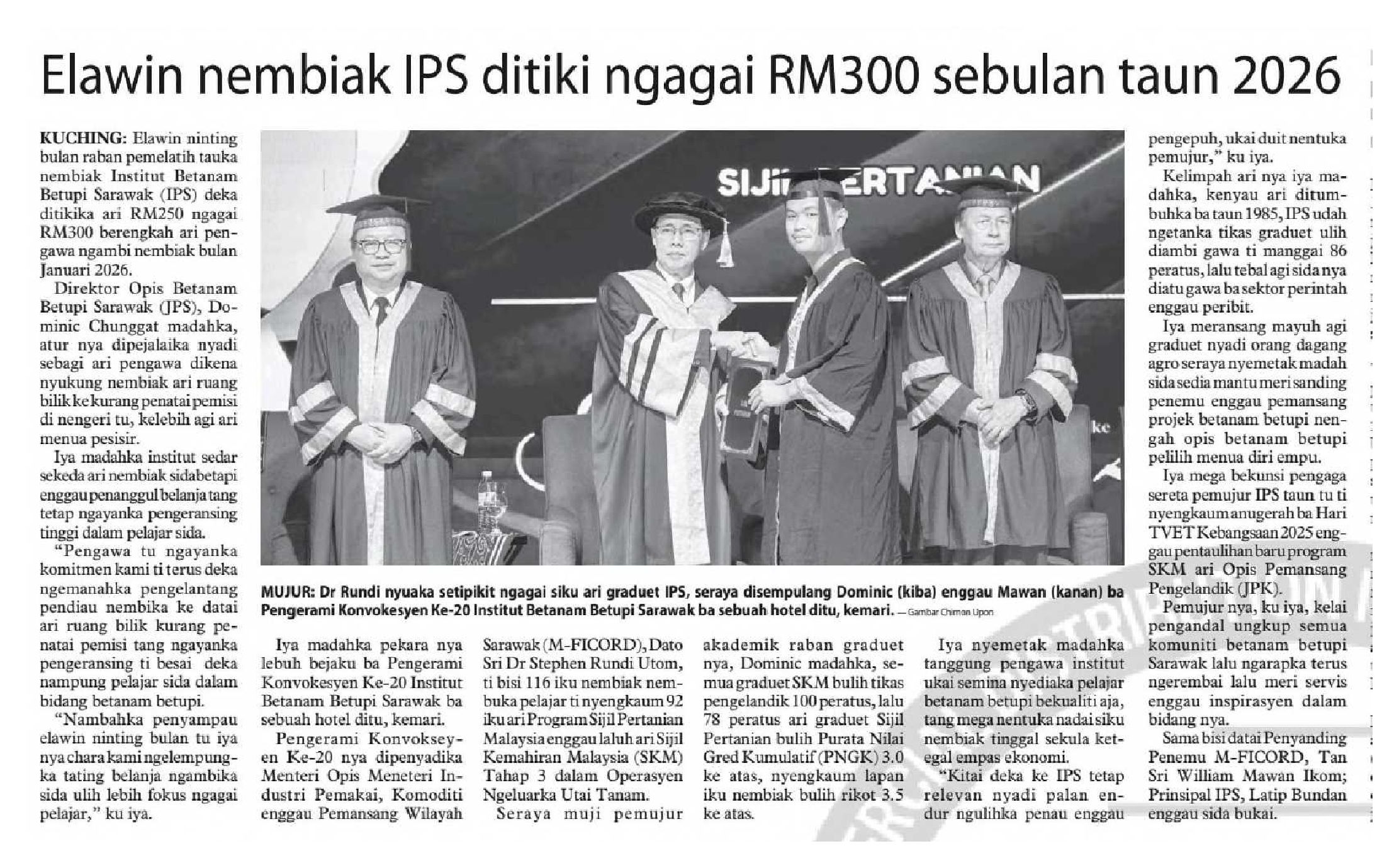 07/11/2025 Utusan Borneo Sarawak Elawin nembiak IPS ditiki ngagai RM300 sebulan taun 2026