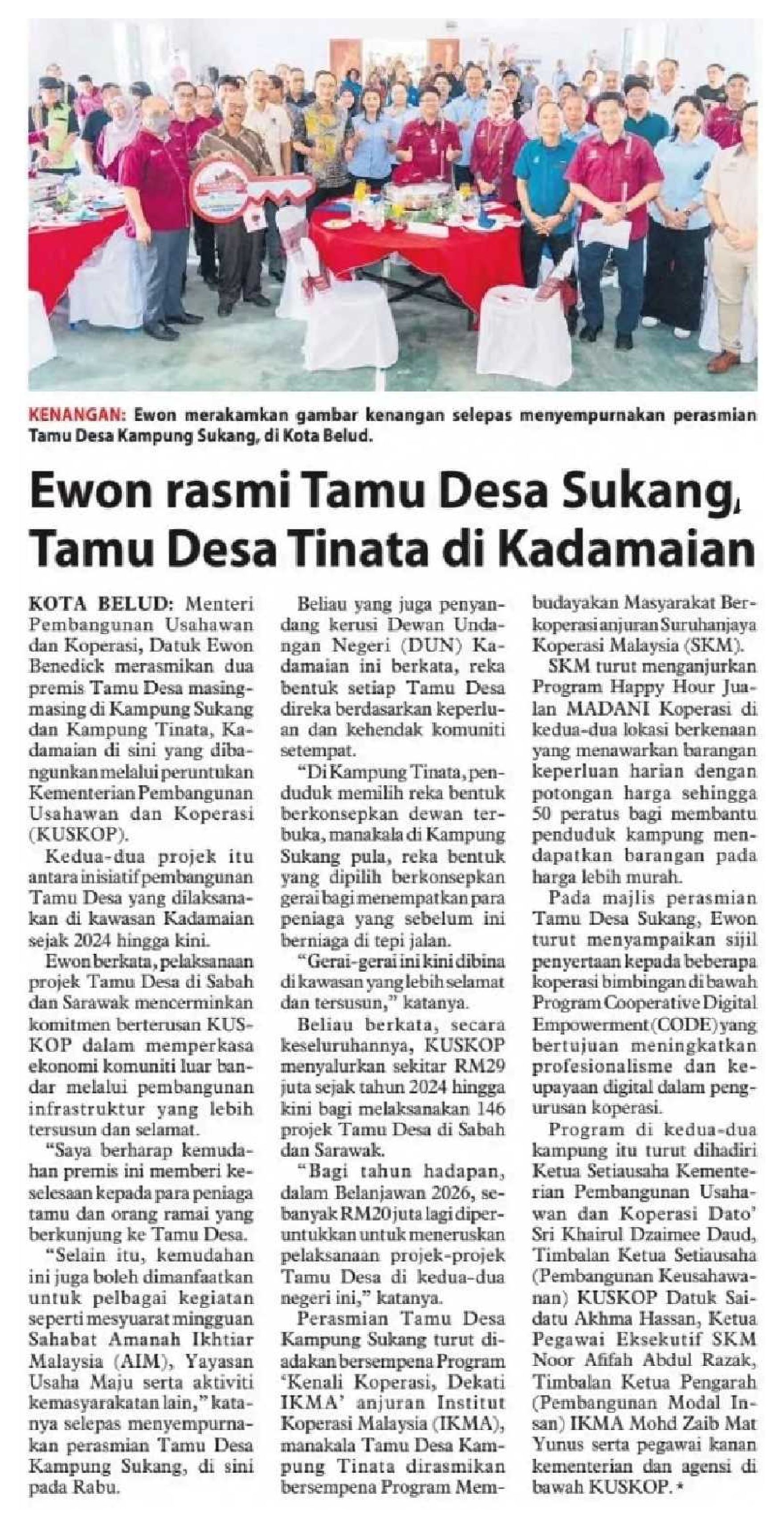 07/11/2025 Utusan Borneo Sabah Ewon rasmiTamu Desa Sukang Tamu DesaTinata di Kadamaian