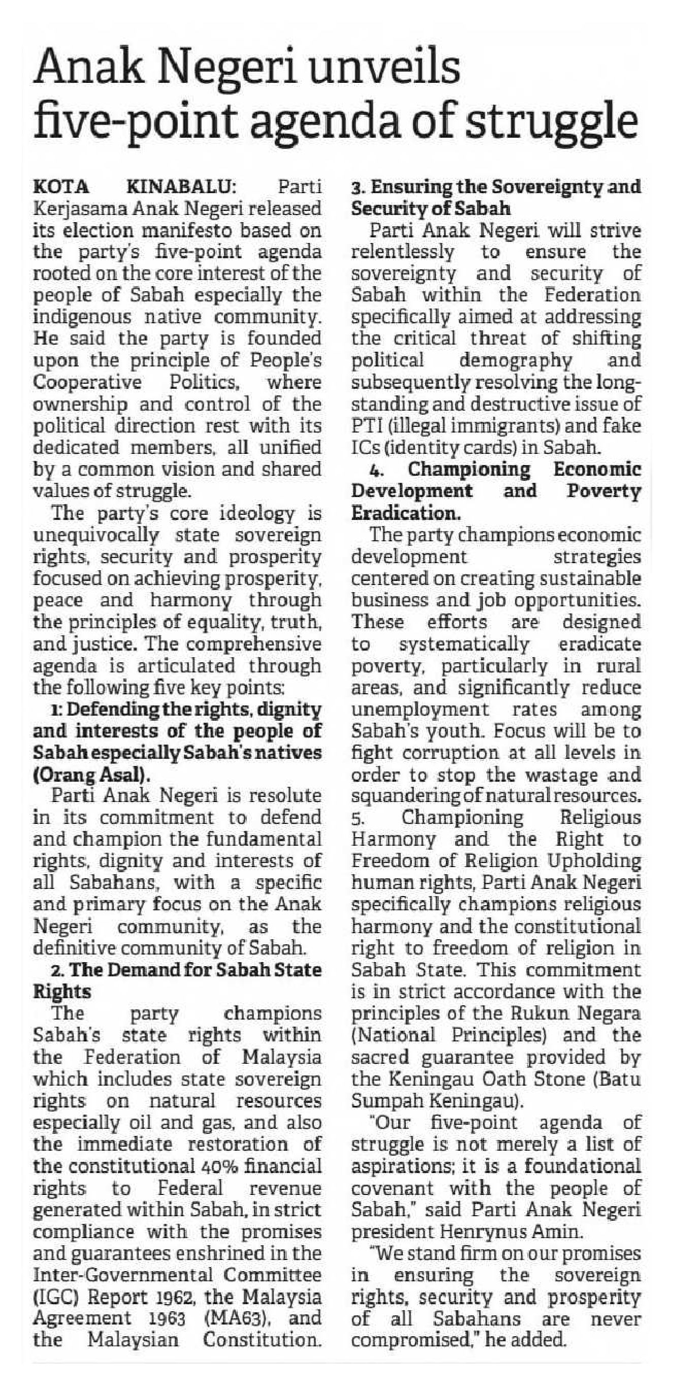 14/11/2025 The Borneo Post Sabah Anak Negeri unveils five-point agenda of struggle